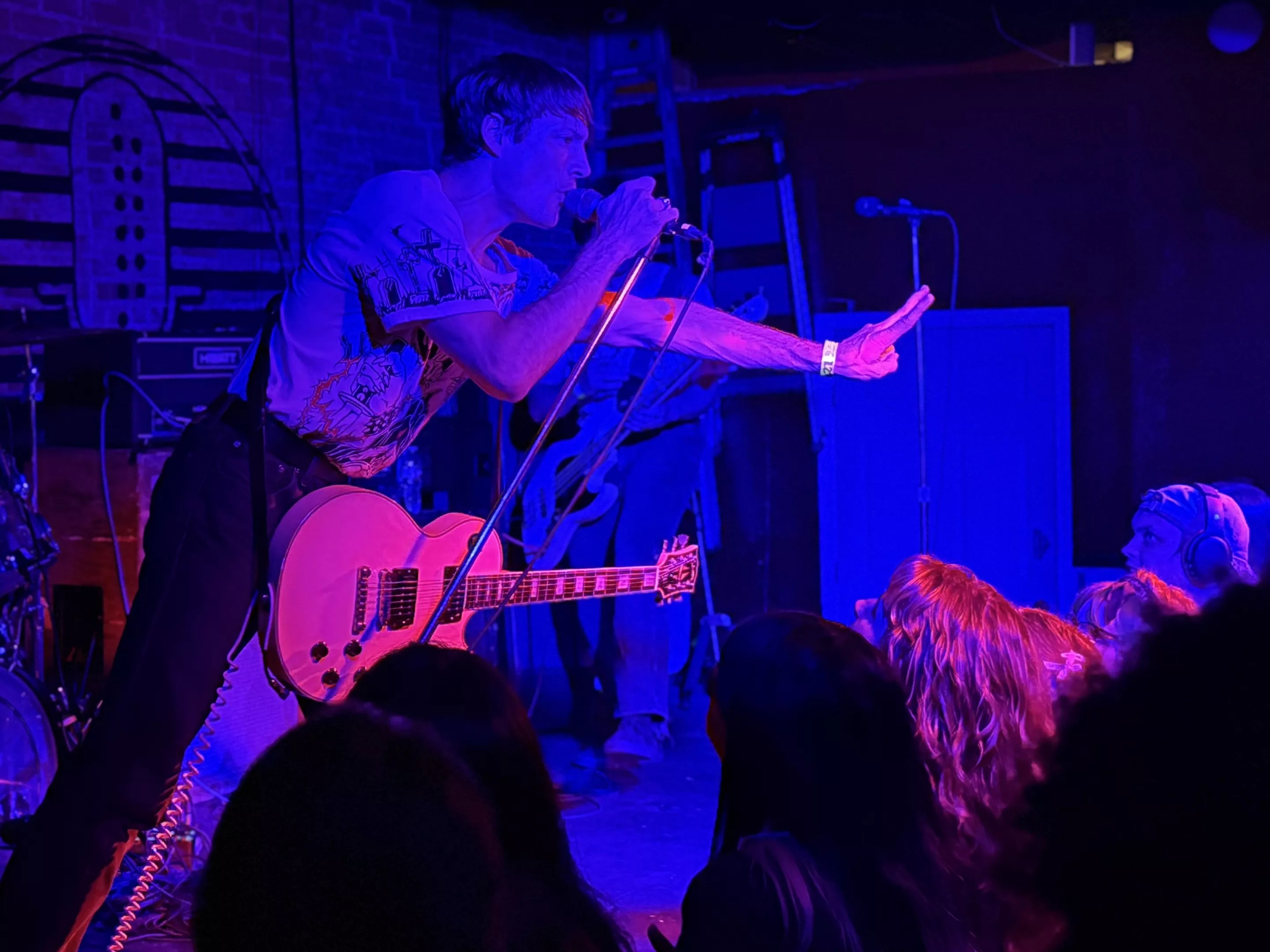 Tuesday, Aug. 5, RBC in Deep Ellum felt less like a venue and more like a time capsule of punk rock chaos. The tucked-away Dallas bar, with its dimly lit, no-fuss aesthetic-gear huddled in corners, walls blemished with ladders and only a sliver of outside light squeezing through the front door-set the stage for a night as gritty as it was enthralling. Heart Attack Man’s Joyride the U.S., & Toronto & Also Vancouver Tour made its pit stop here, bringing together an international punk quartet that left the crowd sweaty, sore-throated and wanting more.