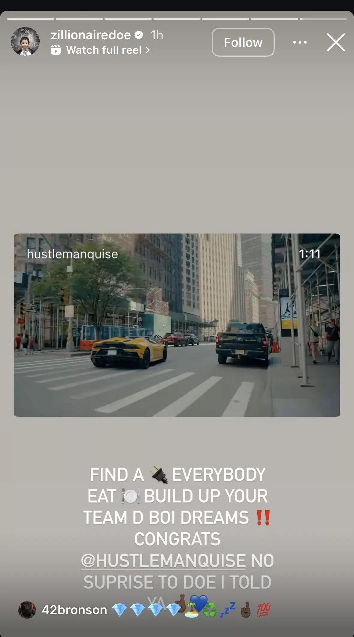 “Find a plug, everybody eat. Build up your team, D Boi Dreams,” Doe wrote. “No surprise to Doe I told ya.”