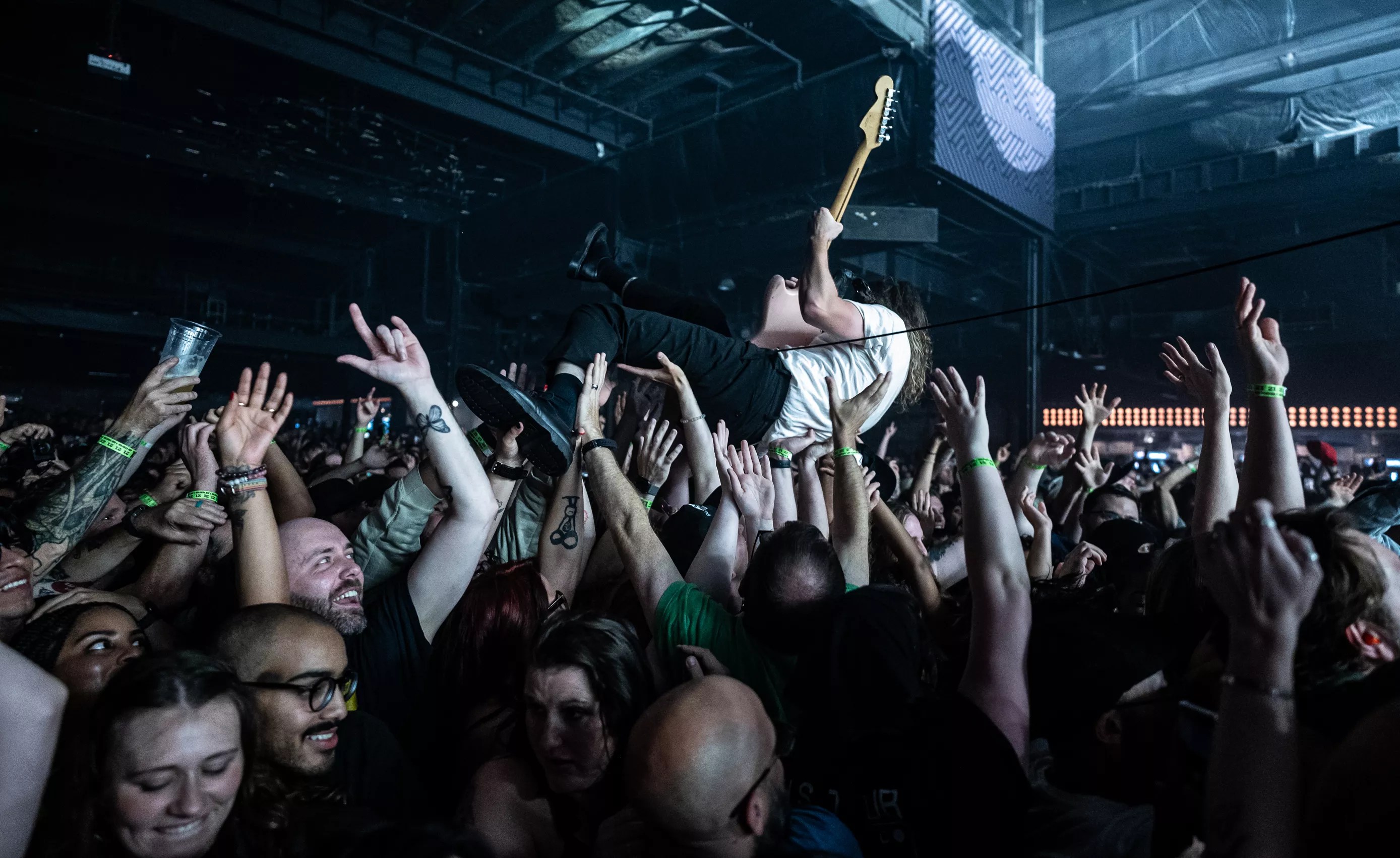 IDLES guitarist Lee Kiernan could not stay out of the crowd in Dallas.