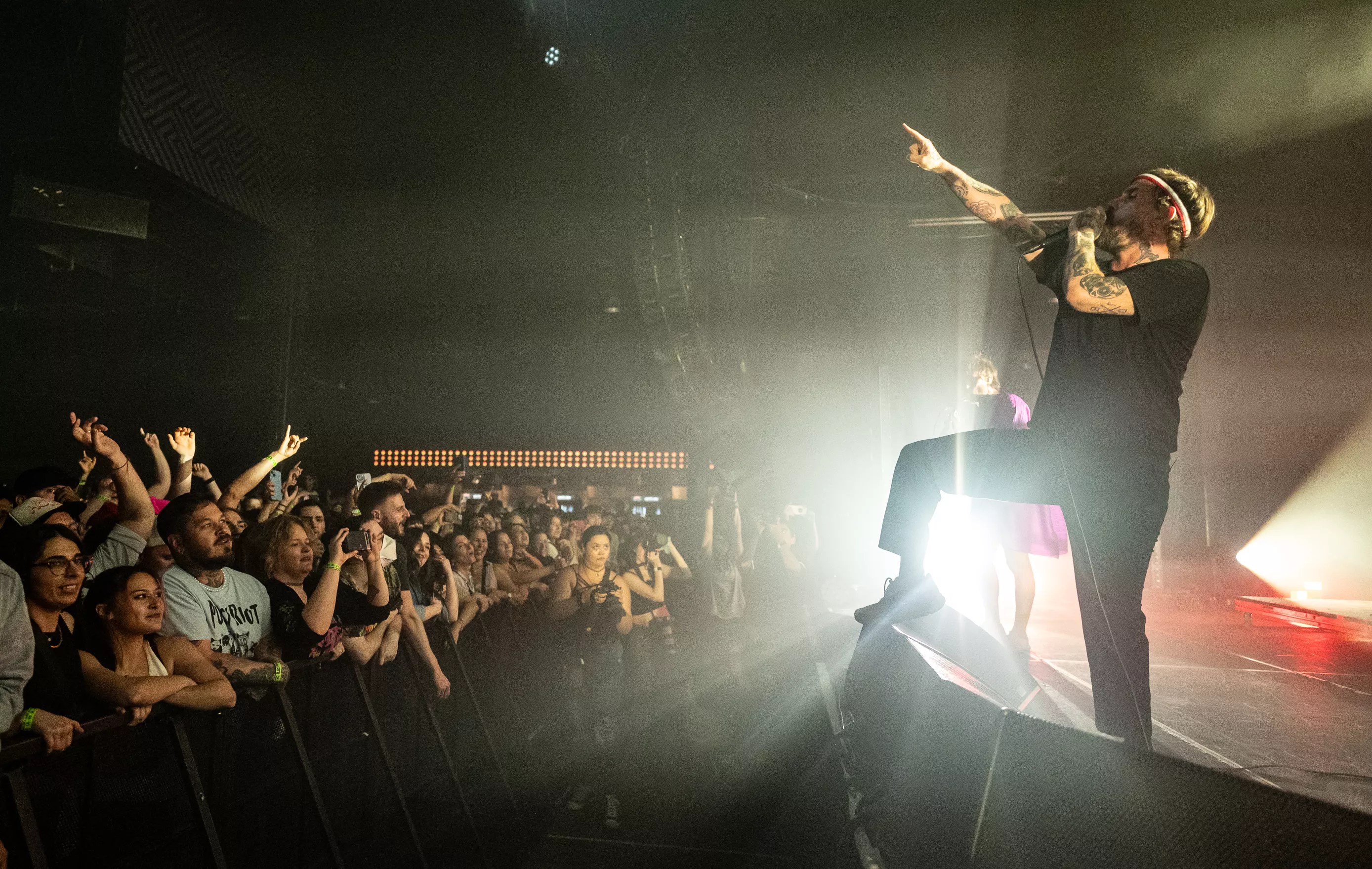 Throughout the night, there were several direct gestures from Talbot and the band of pro-Palestine solidarity, starting with a loud and furious cry of “Viva Palestina!” and later on with Talbot donning a black-and-white keffiyeh thrown onstage by a fan in the front.