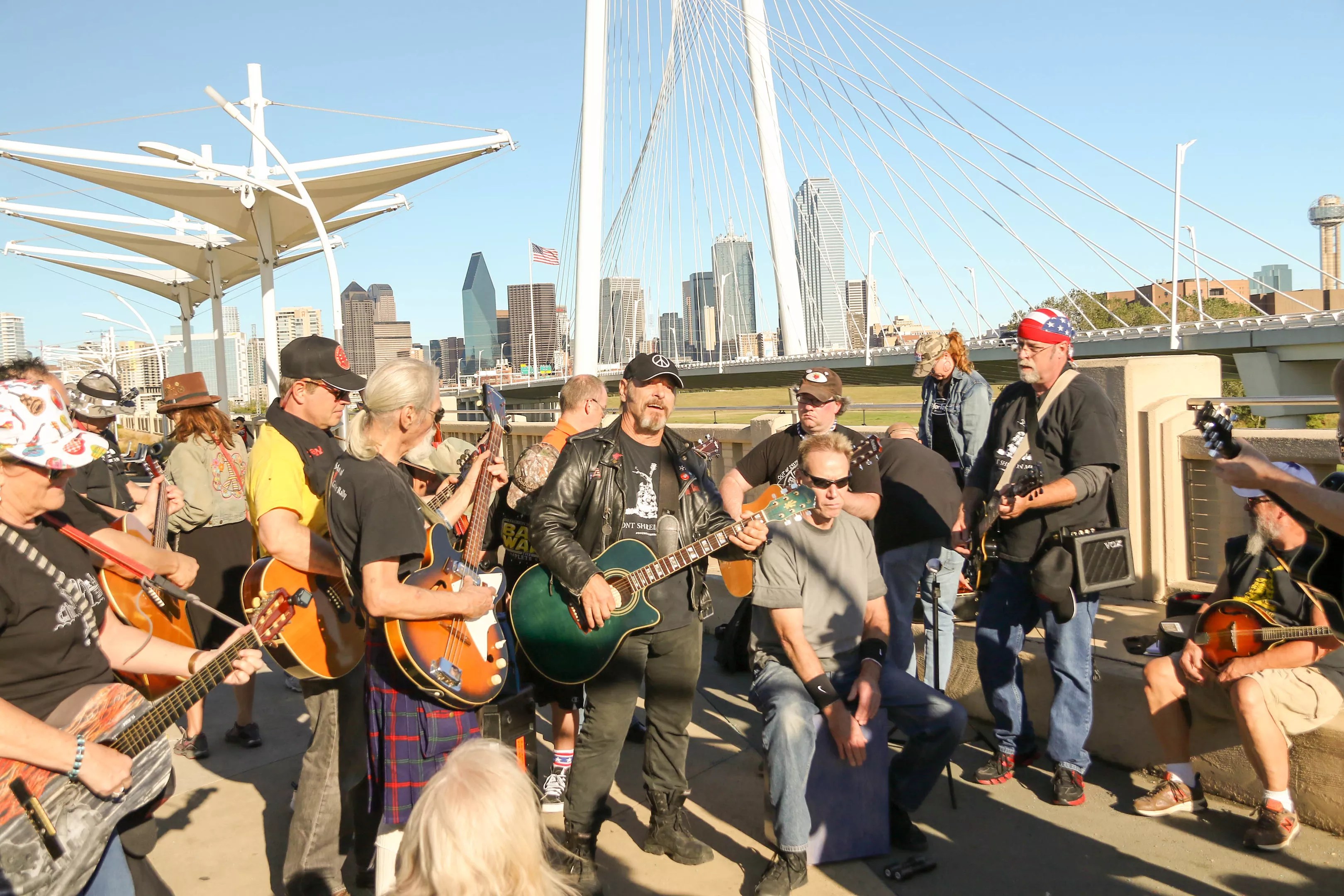 The fourth annual Open Carry Guitar Rally invited hippies and rockers to free-jam rock, blues and folk classics such as Jimi Hendrix’s “Hey Joe” and Steve Earle’s “Copperhead Road” from 3-7 p.m. over the Trinity river, with the Dallas skyline as a backdrop.
