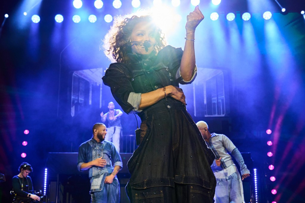 Janet Jackson came out and set the stage on a high note, hearing the sounds of a heartbeat and red lights, letting us know the pulse of the night would be up, starting off with “BurnItUp!” and into “Throb.” The fit was fire, and showing off her physique, the denim jumpsuit with sheer sides and blue rhinestones perfectly matched the all-denim ensembles of her all-male dancers. While singing “All Nite (Don’t Stop),” she asked the crowd, “Do ya’ll want to go all night?” She was letting the crowd know we were in for a hell of a show. The first section kept us on our feet as Ms. Jackson worked every inch of that stage, singing in her perfectly soft but mighty singing voice.