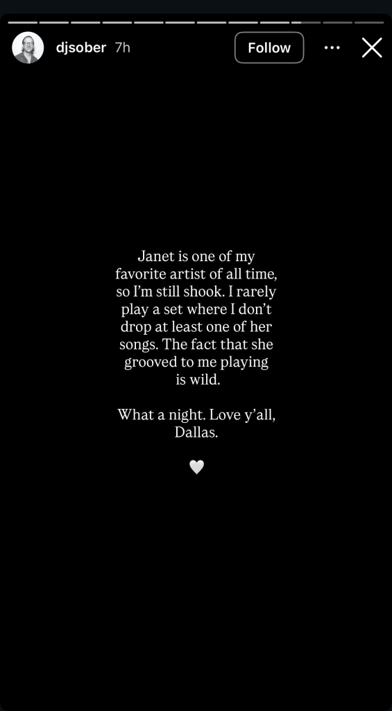 Sober shared his excitement that the Janet Jackson listened to his and Palomo’s sets, explaining that she was one of his favorite artists.