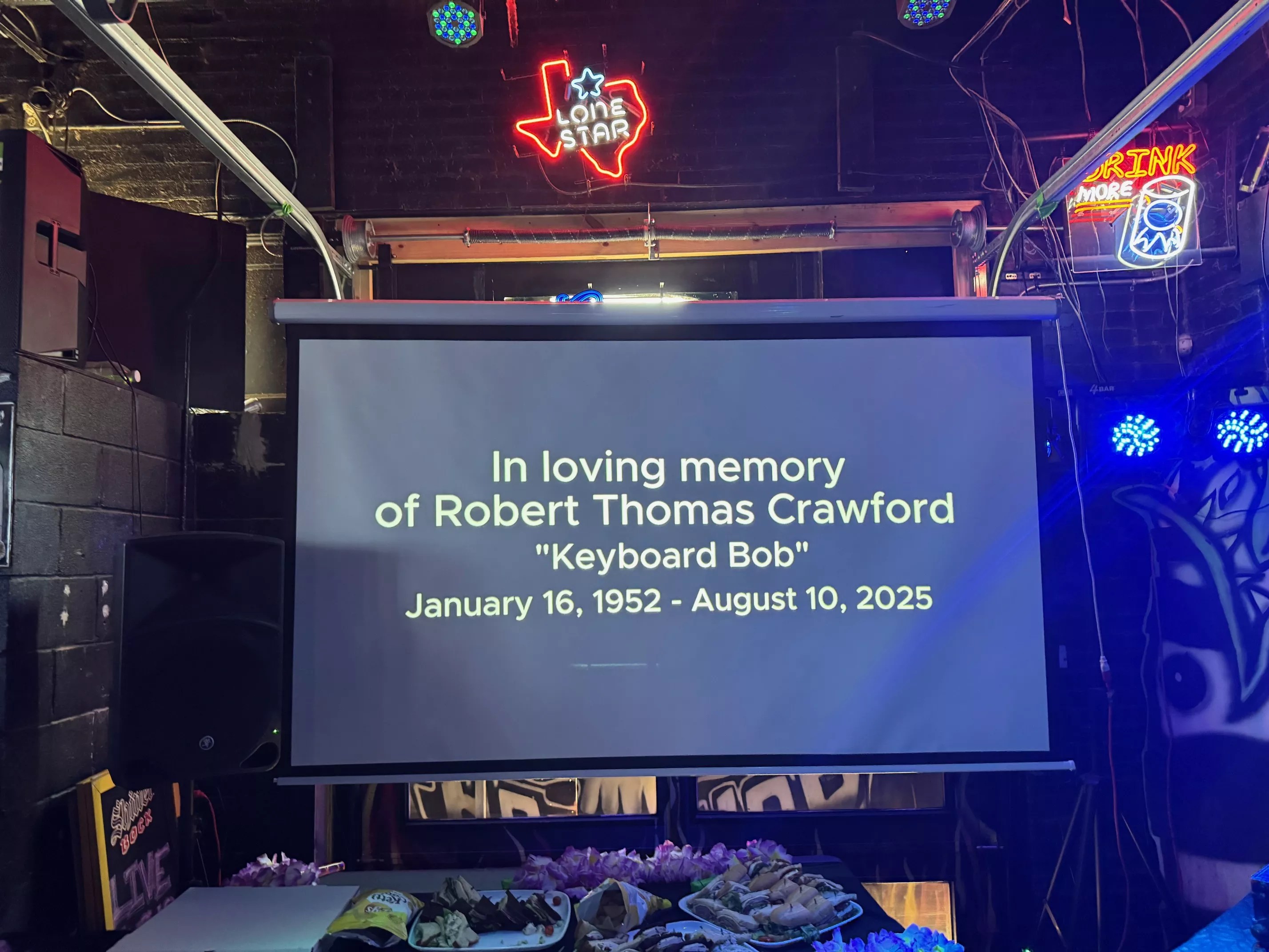 Melody Hamilton, who drove from Wichita Falls, Texas, asked during her speech at Robert “Keyboard Bob” Crawford‘s celebration of life at Reno’s Chop Shop on Sunday, honoring one of the fixtures of Deep Ellum who passed at the age of 73.