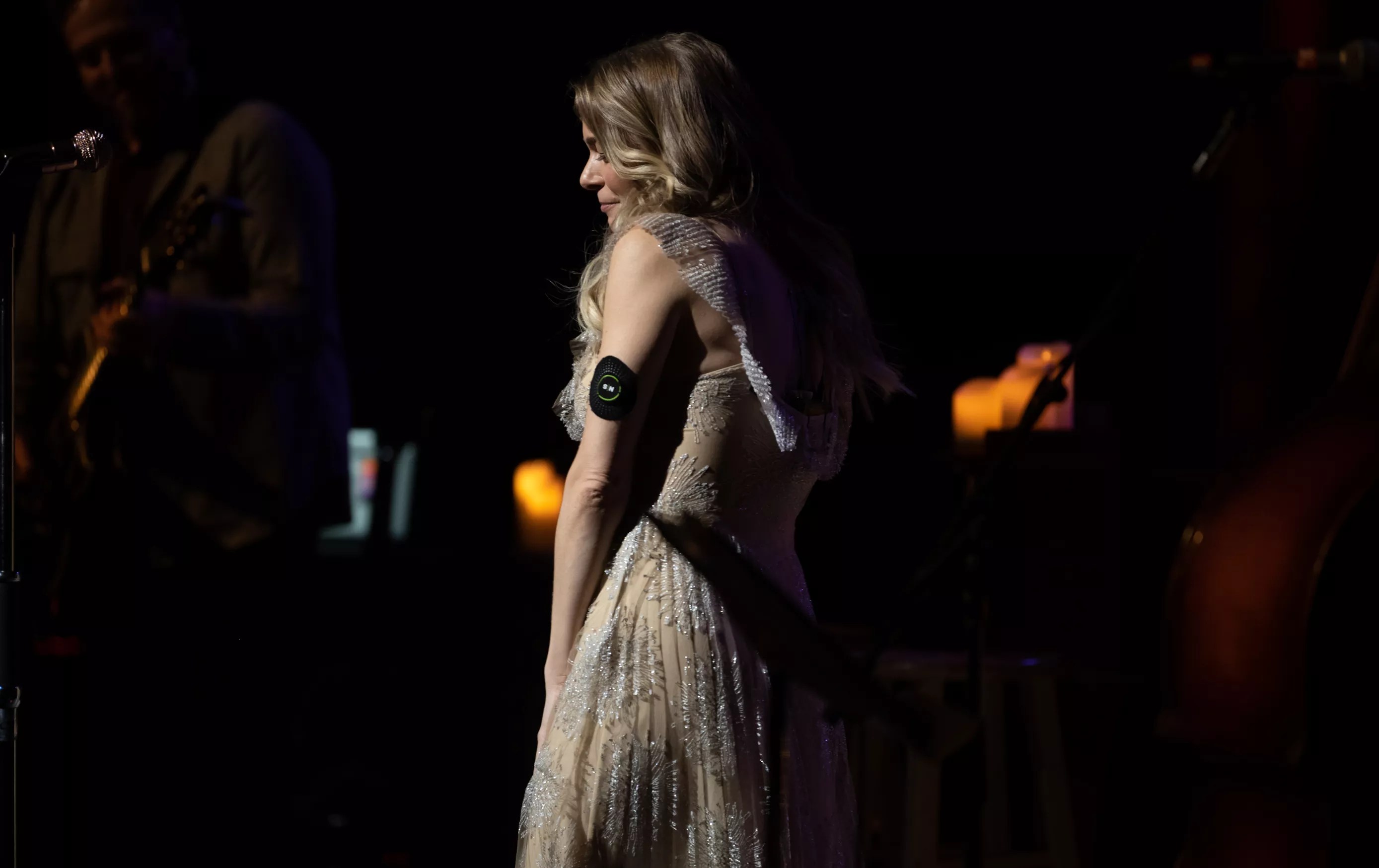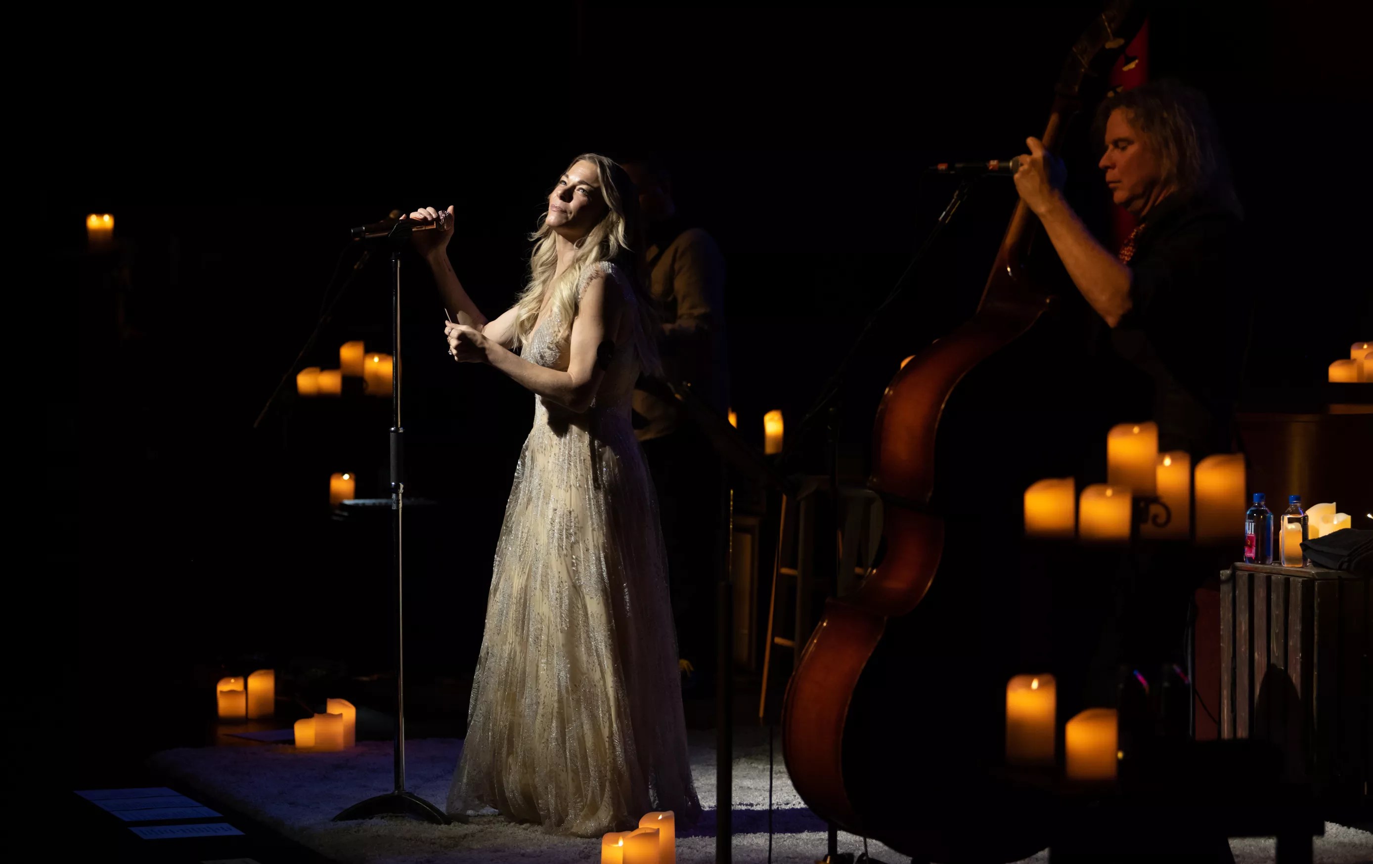 Candles and a fuzzy rug for Rimes’ bare feet gave the evening an intimate feel. Minimal accompaniment and the Winspear’s acoustics gave her remarkable voice room to explore some well-worn Christmas standards.