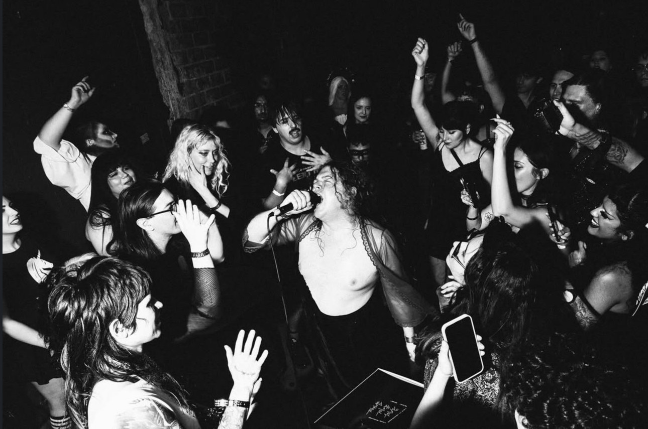 In Dallas, nobody can hear you scream. At least not when it’s late night after a screening of Alien at the Texas Theatre, and you’re behind the theater’s screen, where staff and touring bands have turned the small backstage space into a makeshift cyberpunk club for the evening. It’s loud and dark, save for flashing strobe lights and their reflection on the leather and sunglasses that adorn the room’s audience. It truly feels like you’ve stepped inside the movie you just watched.