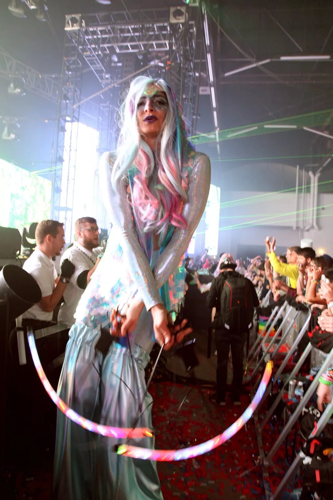 EDM is a visual experience as much as it is an aural one. Dallas’ Lights All Night, which has grown to be one of the largest music festivals in the state, features giant LED boards, complex lighting systems and a troupe of ethereal performers hired to enchant the crowd of ravers. Lady L Entertainment, a company started by Houston native Lydia Reyes, provides the troupe.