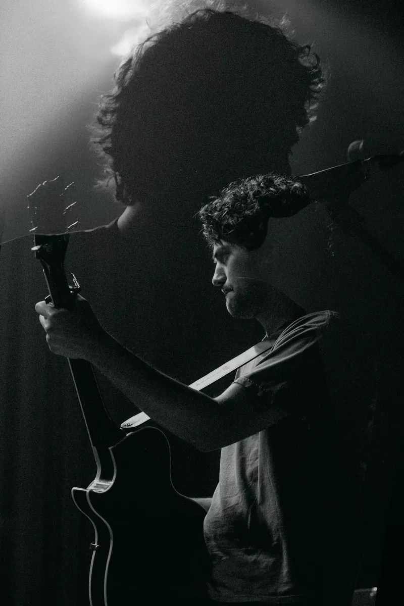 Lenderman’s guitarist plays atop the Tannahill’s Tavern stage.