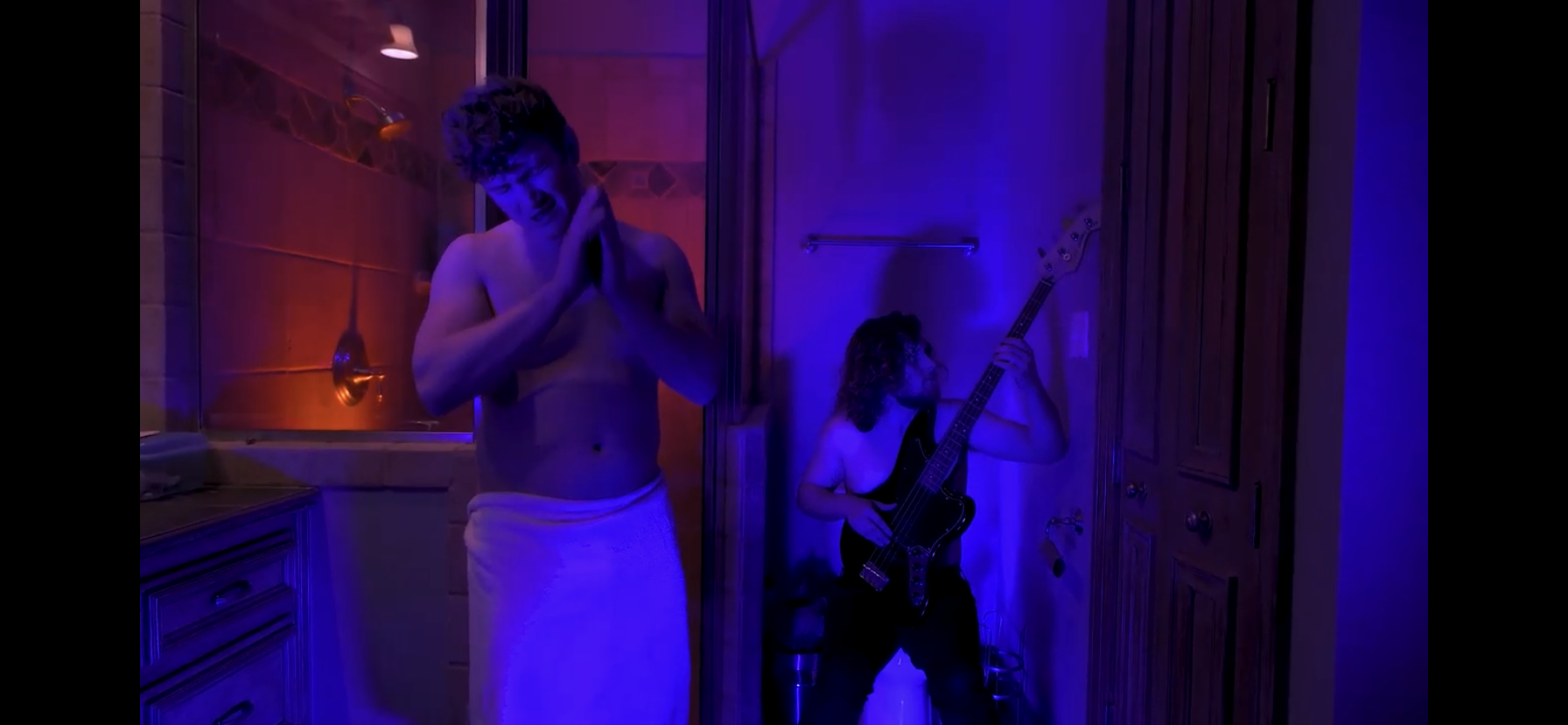 In the video, directed by Hayle Birlew with cinematography by Beau Raines, Rosener and Cameron are seen headbanging in a car, singing and playing music shirtless in a bathroom and in a party, where they both ignore women’s advances. In a few shots, Rosener is seen wearing a white button-up shirt from the waist up and underwear and lingerie from the waist down.