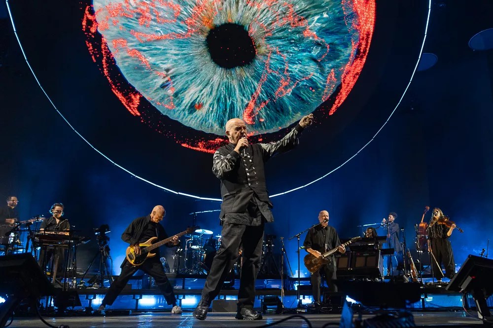 At 73, the Grammy-winning Gabriel could very easily assemble a 90-minute set full of hits, tuck in a couple of deep cuts, tour relentlessly and drift off to sleep atop a pile of money high enough to scrape the heavens. Instead, he’s taken what’s considered a more daring approach: make the familiar a reward for indulging in the unknown. The whole of Gabriel’s Thursday night set was over 2.5 hours long but split in two by a 15-minute intermission. The first set was roughly 70 minutes in length, and the second set a bit longer at 75 minutes or so.