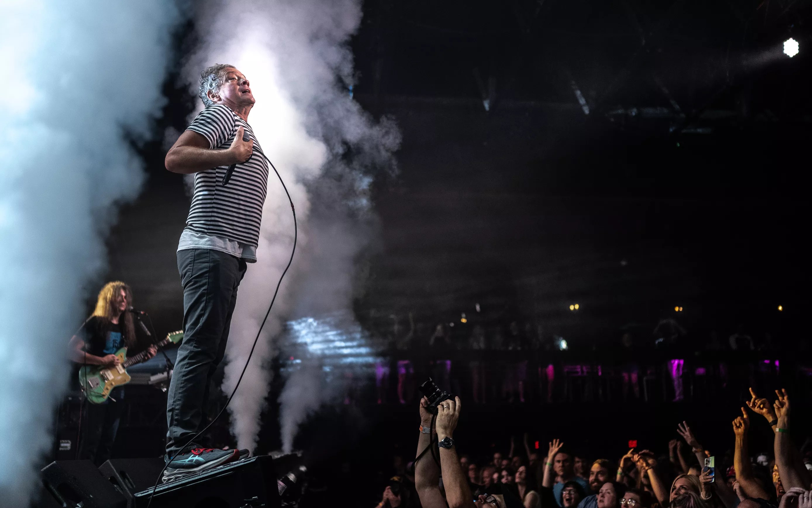 At that point, the singer said, “OK, that was our last song,” with a chuckle as everyone in the room laughed. Tripping Daisy ended the night with “My Umbrella,” and that’s when things got really wild. As the front half of the room jumped up and down, one crowd surfer managed to jump from the stage, but missed the screaming crowd and connected instead with the metal barrier fence. It was later confirmed via DeLaughter’s social media feed that the concertgoer had broken his jaw and lost a tooth, but was otherwise OK. As the night ended and the band took a bow together in front of thousands of screaming fans, DeLaughter’s words centered on his former bandmates.