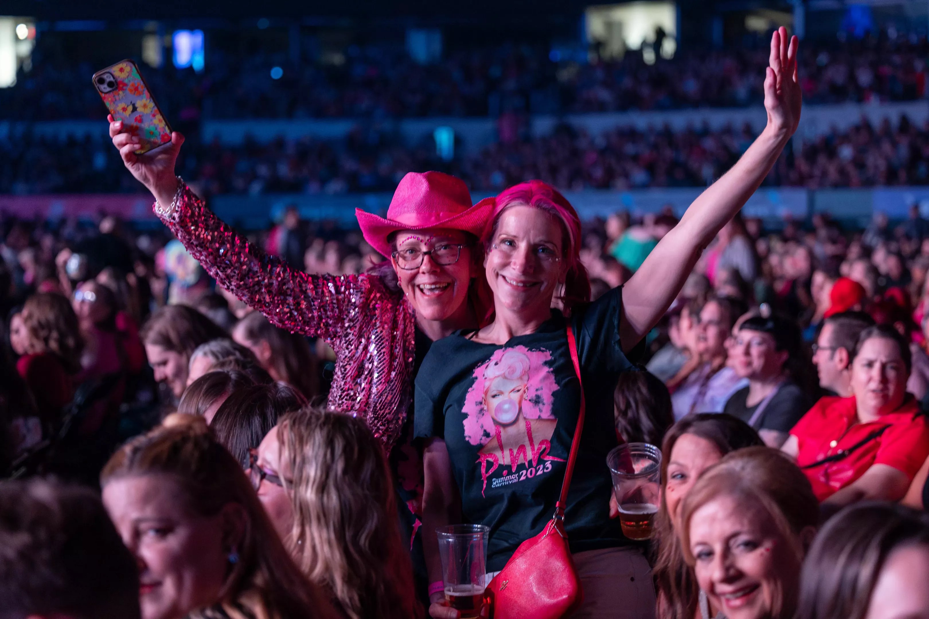 Pink wowed her fans at Globe Life Field as she soared above the crowd doing daring aerial stunts.