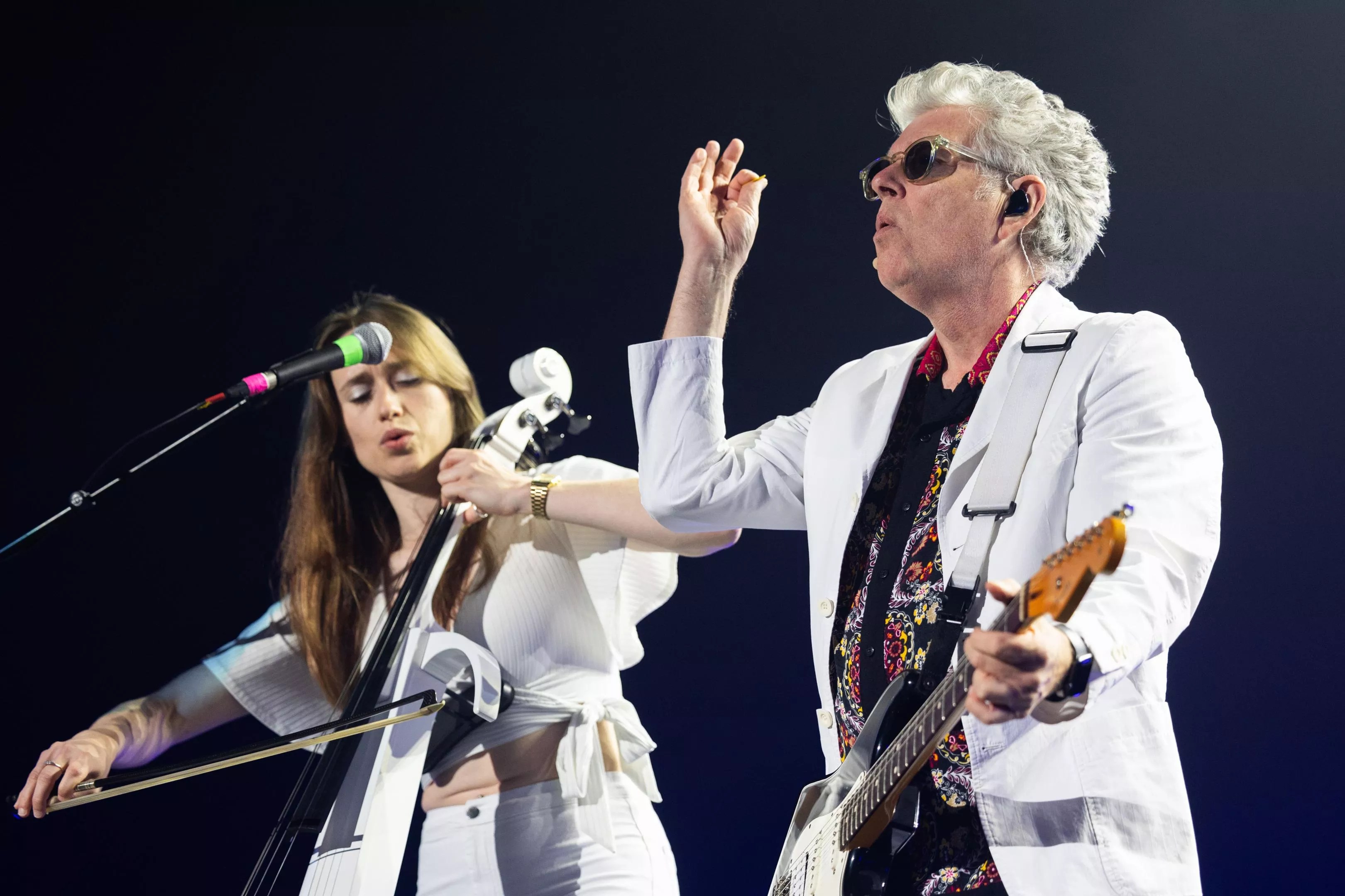Arguably the best performance of the night came from Tom Baily of Thompson Twins. Baily put together a trio of beautiful women who rocked these songs to perfection. They all wore white, which made a gorgeous stage aesthetic. Baily’s set, unlike the previous acts, were all familiar songs. Thompson Twins had a string of hits, and they played most of them.