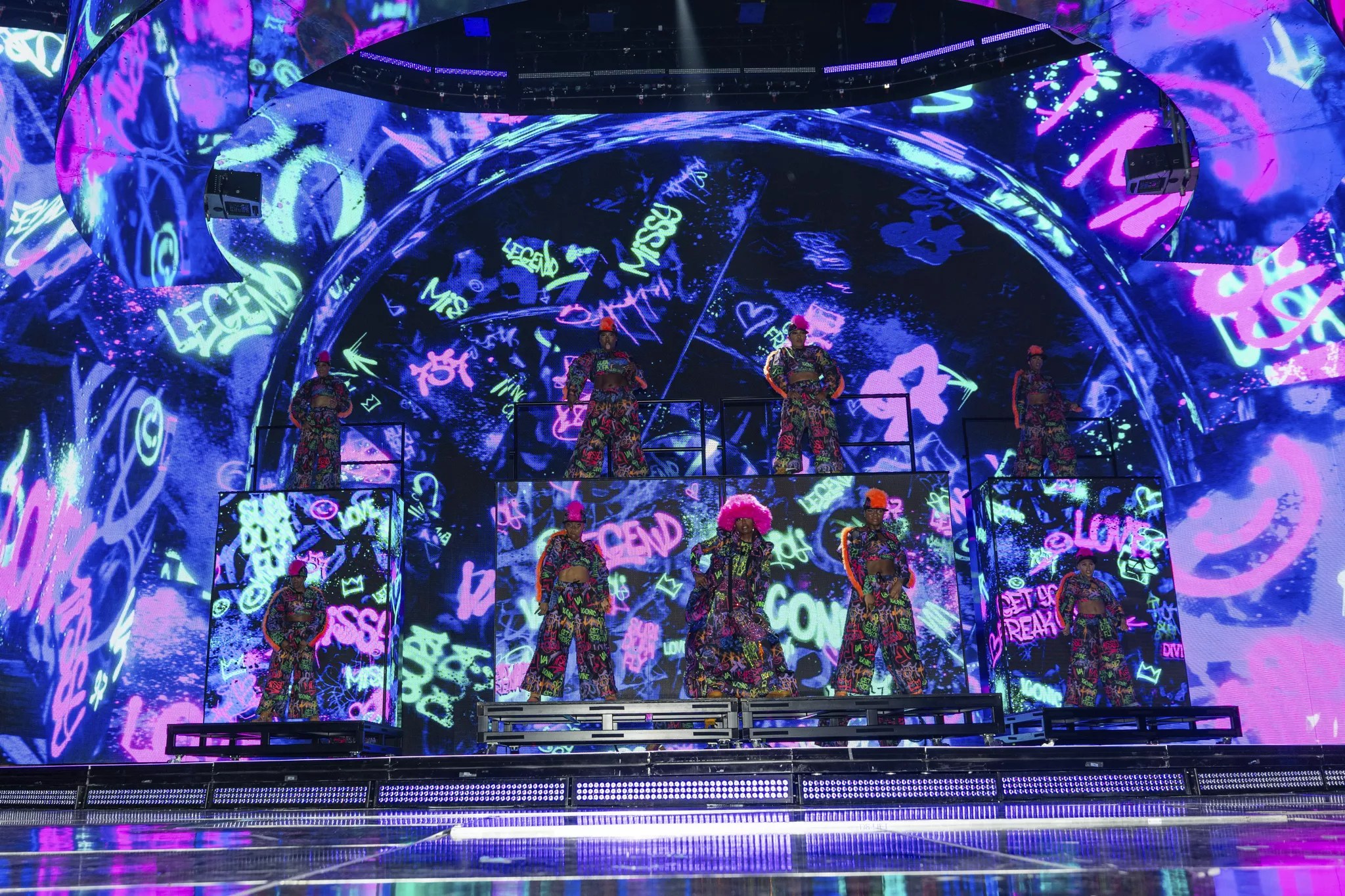 The show is formatted like an hour-and-15-minute-long ride through space, as fans are taken through different “planets” symbolizing various stages of Elliott’s career. She arrived on the stage performing “Throw it Back” from her 2019 EP Iconology. Throughout the show, she walked us through all her eras, with many theatrics, as she and her dancers set various scenes with stunning visuals.