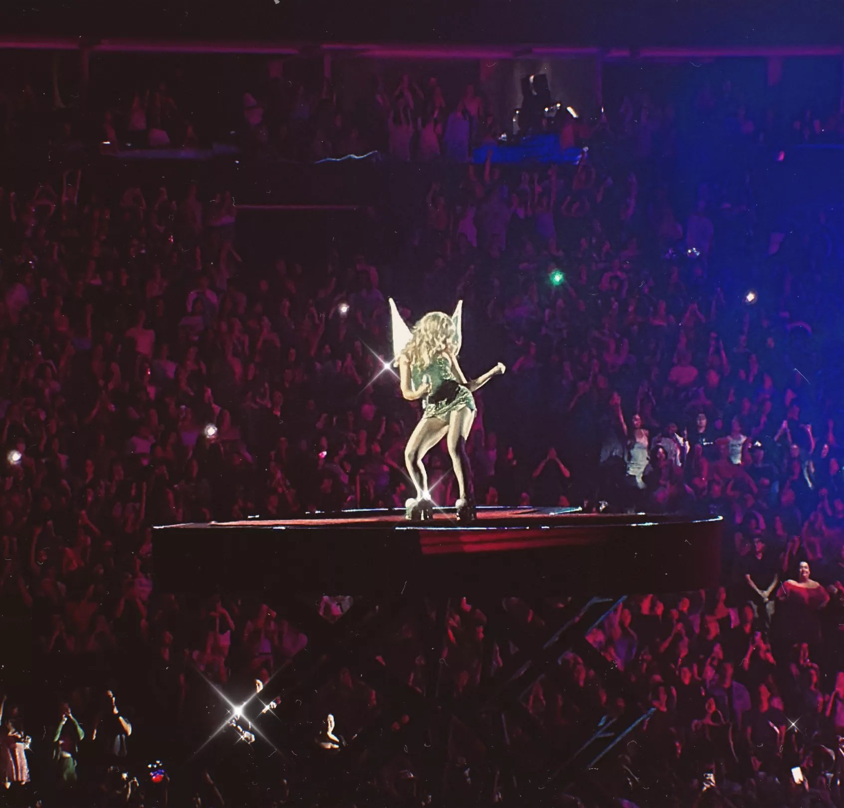 Nobody was actually disappointed, of course, because Carpenter has built on the lessons learned from “Nonsense” with new and improved moments of intrigue throughout the set. Right off the bat, she opens her first song, “Taste,” by pulling away a towel wrapped around herself to reveal a glimmering leotard that’s a different color at every stop.