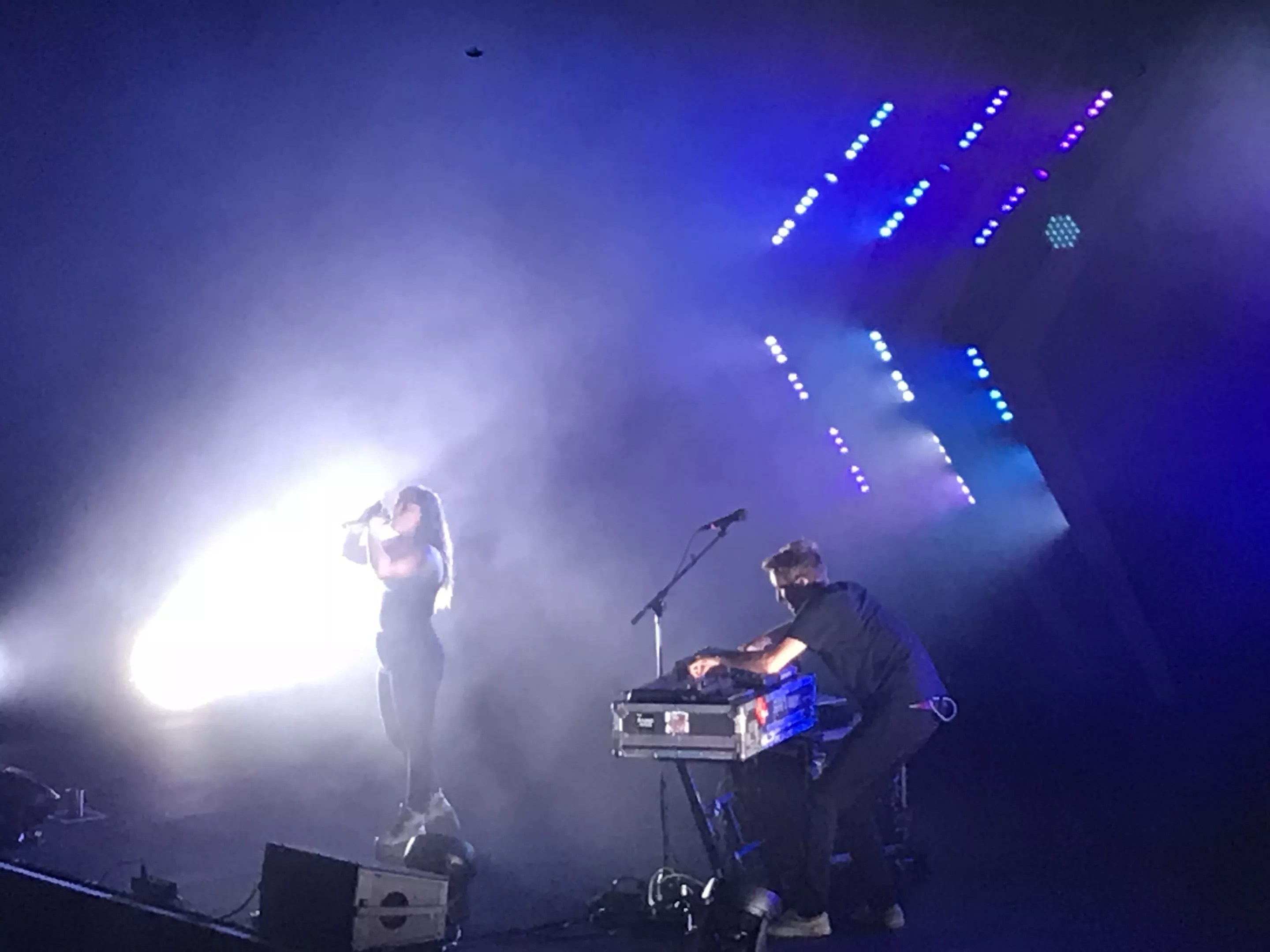 Meath and Sanborn have used the past few years on the road to smooth out and coordinate their act. In her signature platform athletic shoes, Meath cuts slinky dance moves and mini feats of gymnastics as she wears out a steady path around the perimeter of the stage, never missing a beat and avoiding Sanborn’s frequent bouts of coordinated dancing. Her vocal range is impeccable; she deftly pulled off full-throttle yelps on “Wolf,” commanded the scope of pop masterpiece “The Glow” and led the crowd in a perfect singalongs over the choruses of “PARAD(w/m)E” and “H.S.K.T.,” where it proved mesmerizing to hear the masses singing along to “Head, Shoulders, Knees and Toes.”