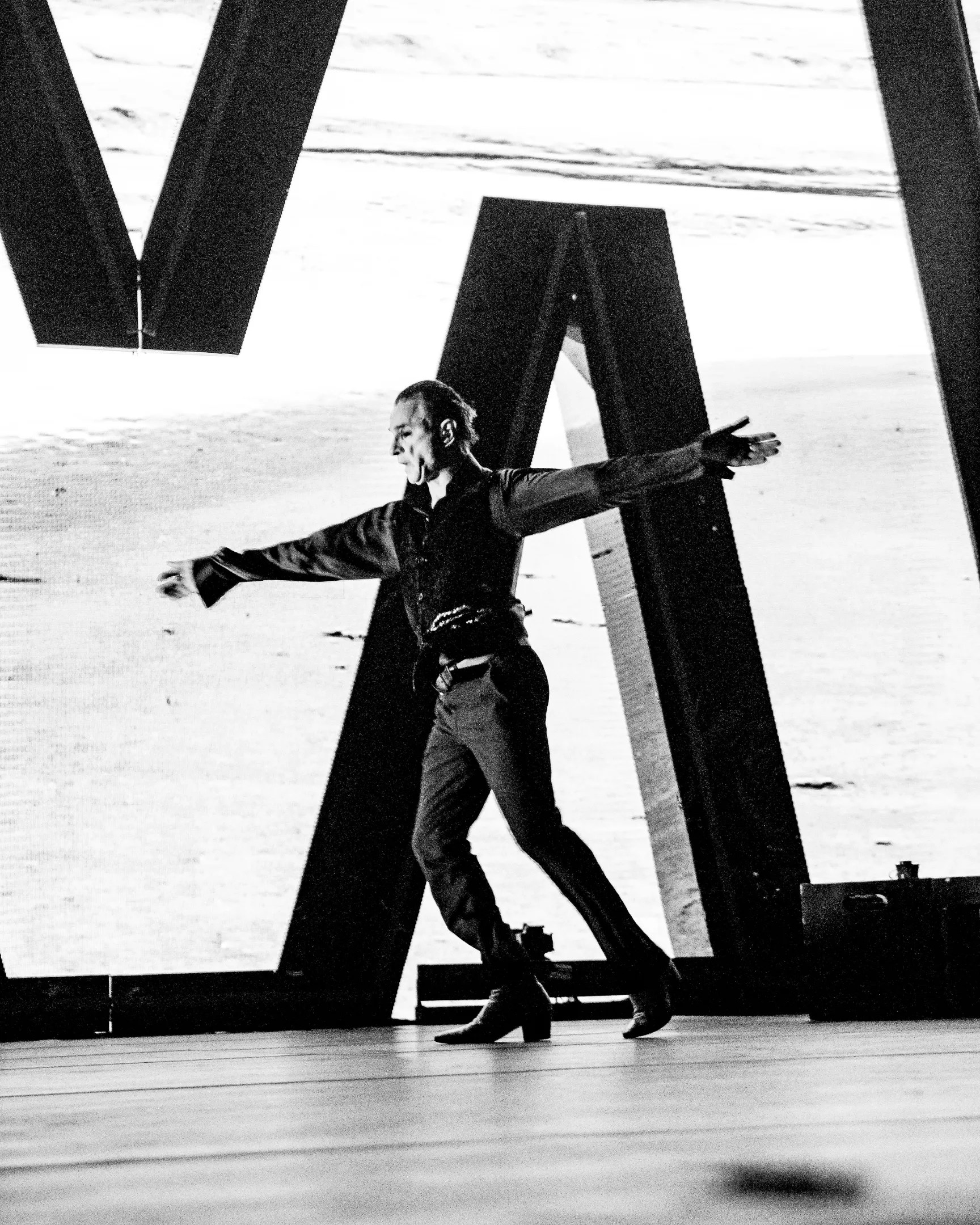 Gahan made use of every inch of the stage and the T-shaped runway, displaying moves that would earn him comparisons to the Mick Jagger of goth. The band played an emotional “World in My Eyes,” which they dedicated to their original keyboardist (and one of Depeche Mode’s original founding members) Andrew Fletcher, who died in May 2022. His photo was displayed on the backdrop.