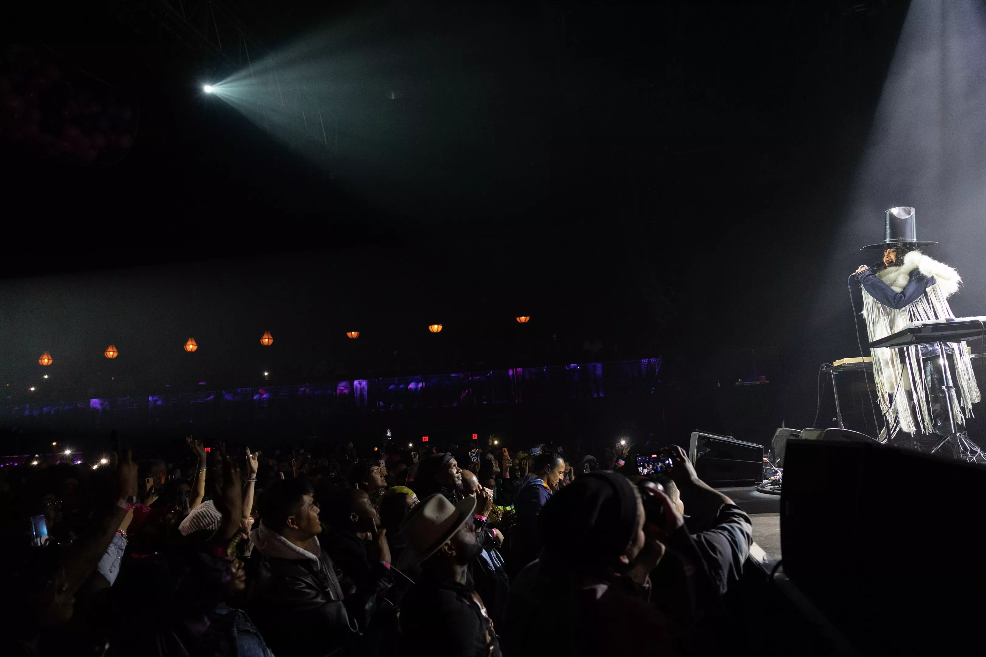 But Friday night was definitely Erykah’s night. Ms. Badu came out in the most Badu way possible, sporting a mirrored top hat, white furs and fringe off her arms. Her gold teeth sparkled; she was gorgeous and wasted no time taking the mic and owning the room.