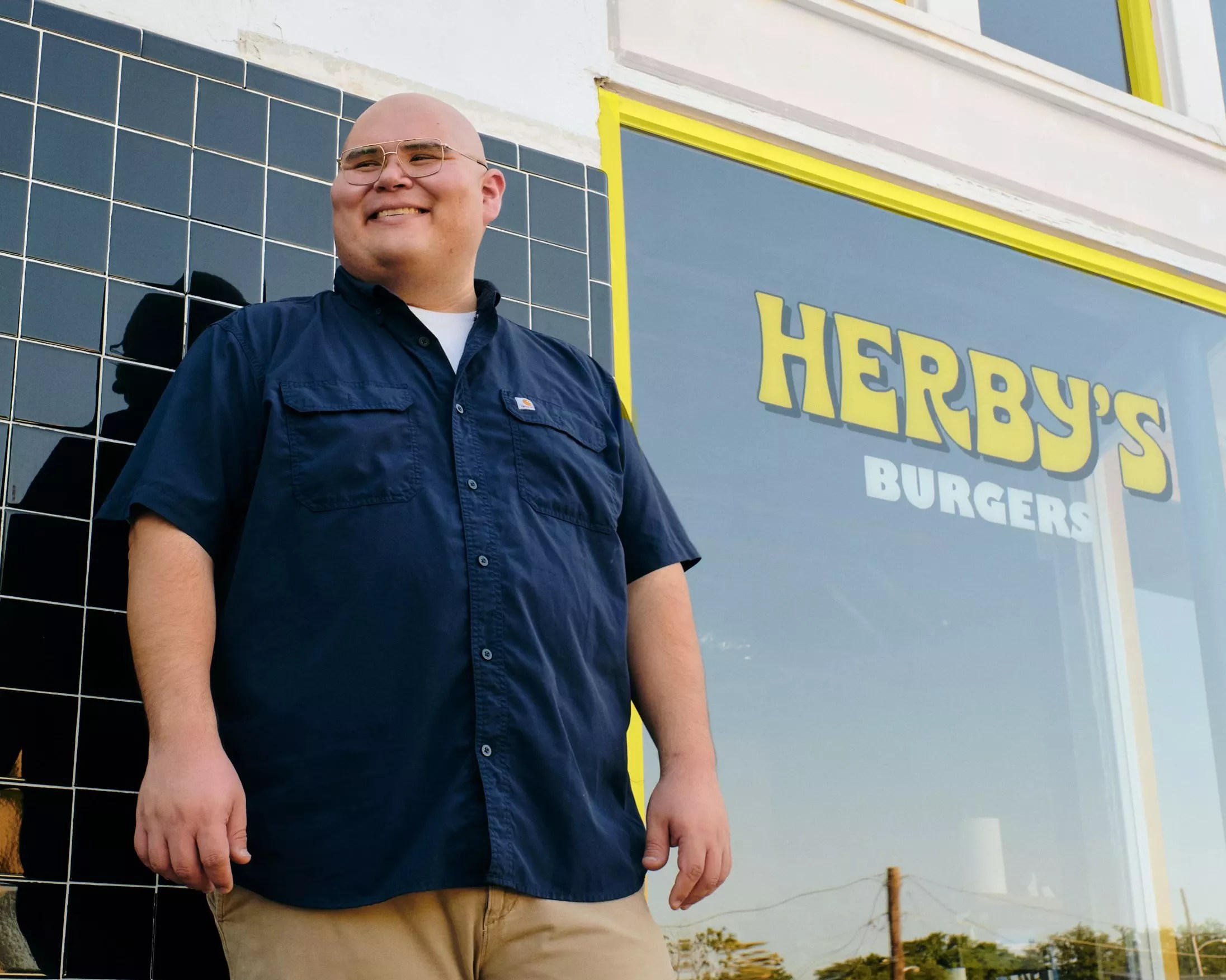 Throughout his career, spinning everywhere from the long-missed Beauty Bar to roller skating parties to pop-up parties with Leon Bridges, and manning the booth at newer clubs such as Double D’s, Rhoten has become well-versed in making things happen, a talent he’s honed since turning his teenage hobby of spinning records into a profitable business. Now he’s taking on the foodie world with the help of Peaberry Coffee owner Elijah Salazar and Rev’s Grilled Cheese’s Jake Saenz. Together, they’re launching Herby’s Burgers in the Elmwood spot formerly housing Pizza Frita.