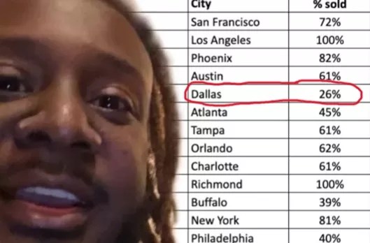 The artist jumped on his TikTok app last Saturday to show people a spreadsheet of the latest sales percentages for the stops on his “Road to Wiscansin” tour. Apparently, Dallas isn’t pulling its weight.