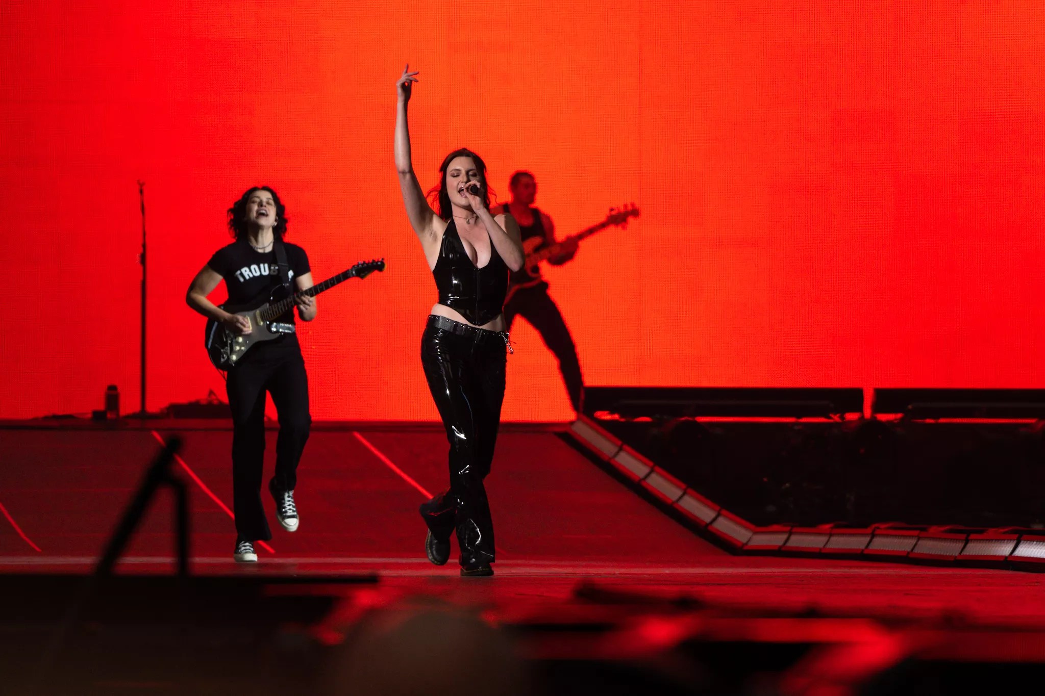 Tickets for the Arlington shows started at $500, despite Swift’s and her litigious fans’ protests, but if ever a concert was worth a splurge, it was this elaborately staged tour through Swift’s discography. Because of the pandemic, Swift is touring for her last three albums for the first time. She started out with the Lover portion of the setlist, with “Miss Americana & the Heartbreak Prince,” close to 8 p.m., followed by “Cruel Summer” (there was no St. Vincent cameo this evening, which was disappointing) and “You Need to Calm Down,” though no one could. MUNA was one of the openers for Taylor Swift’s Eras tour. Natalie Perez