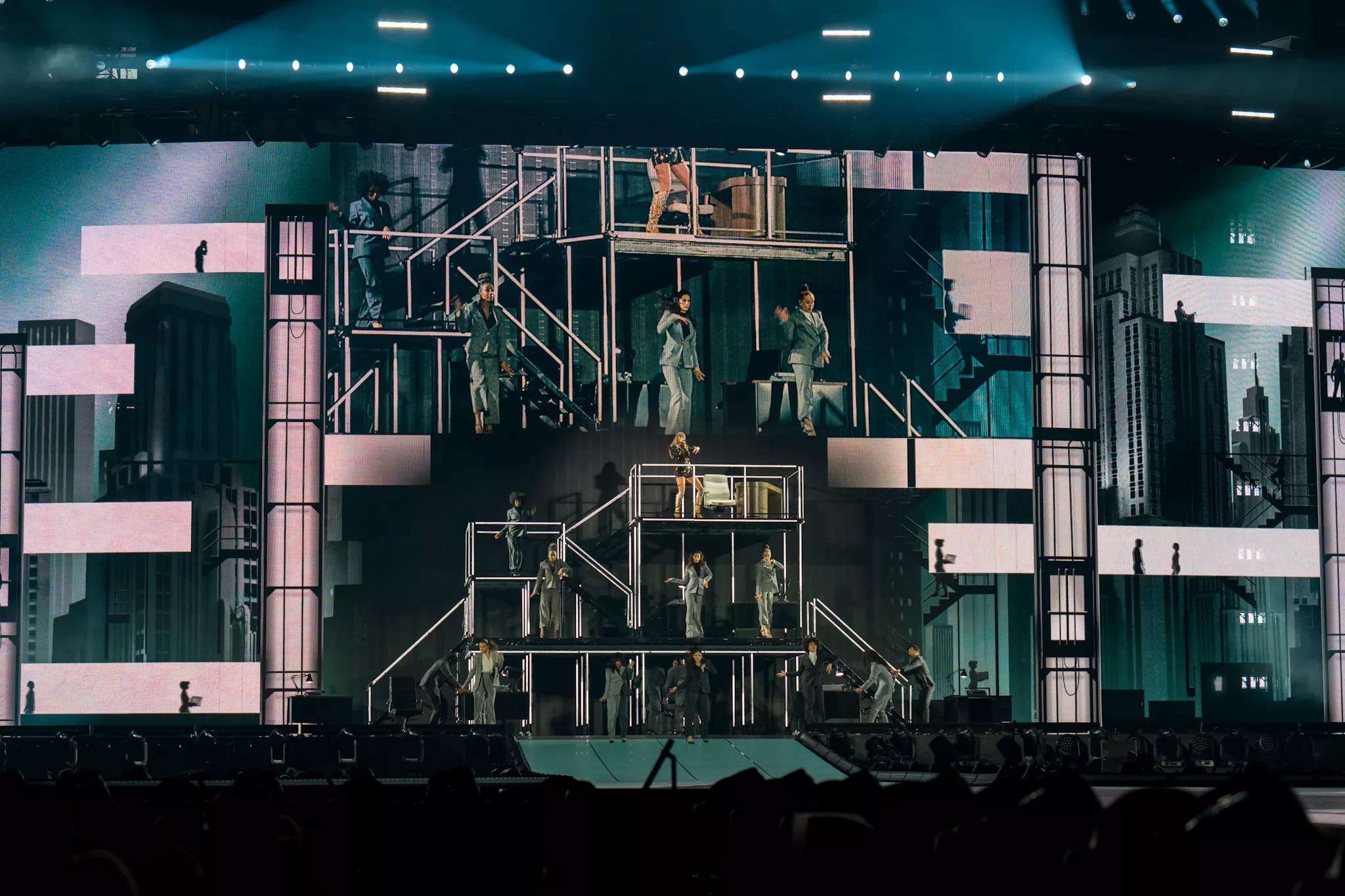 The whole stadium lit up again in red for “Bad Blood” as the onscreen house burned. The show gave the entire audience a hot flash with fire shooting up all around the arena.