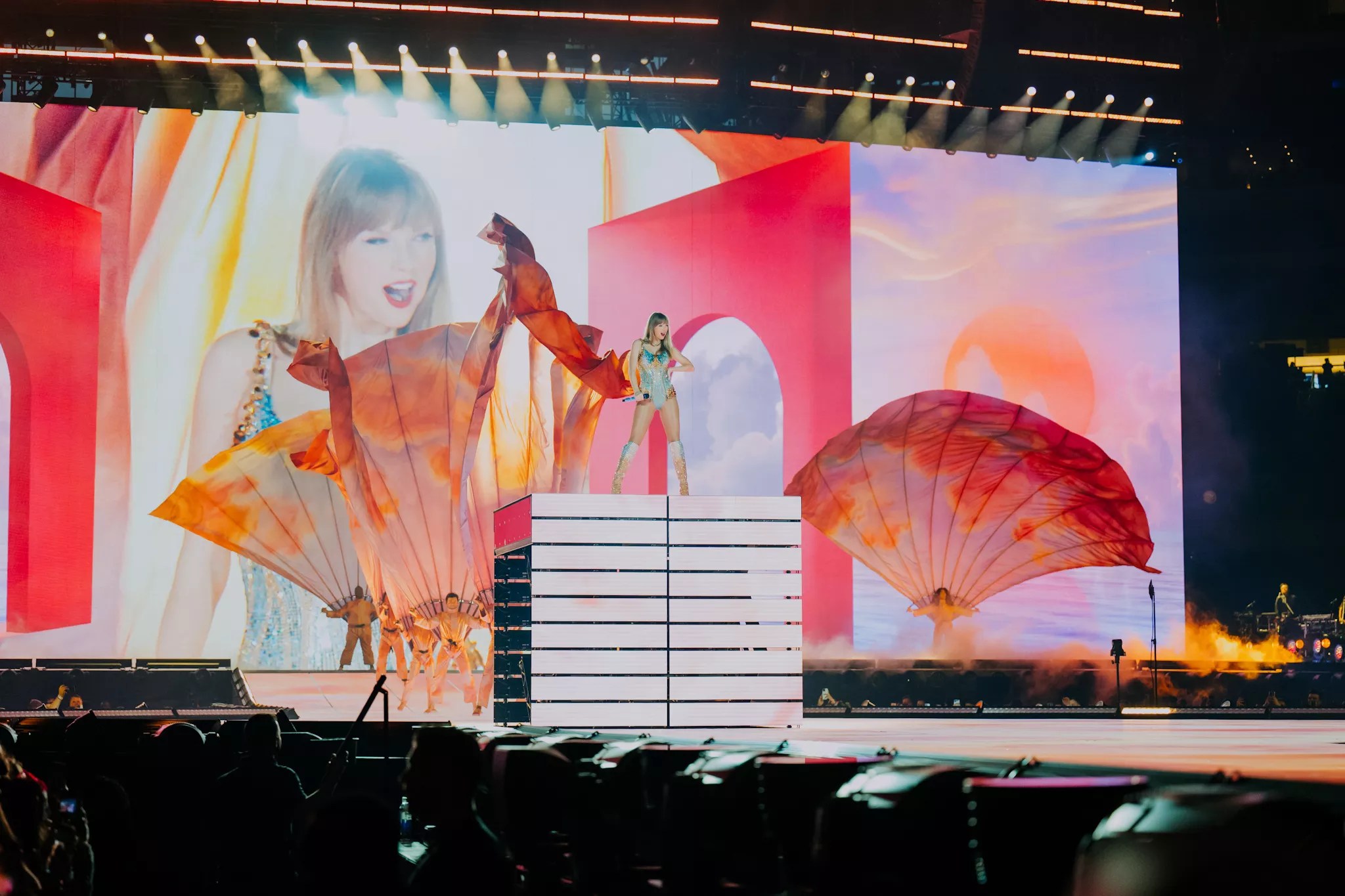 “Are you ready to go back to high school?” she asked, prompting the strongest singalong until that moment with “You Belong With Me,” as a gold-lighted platform raised her above her subjects.