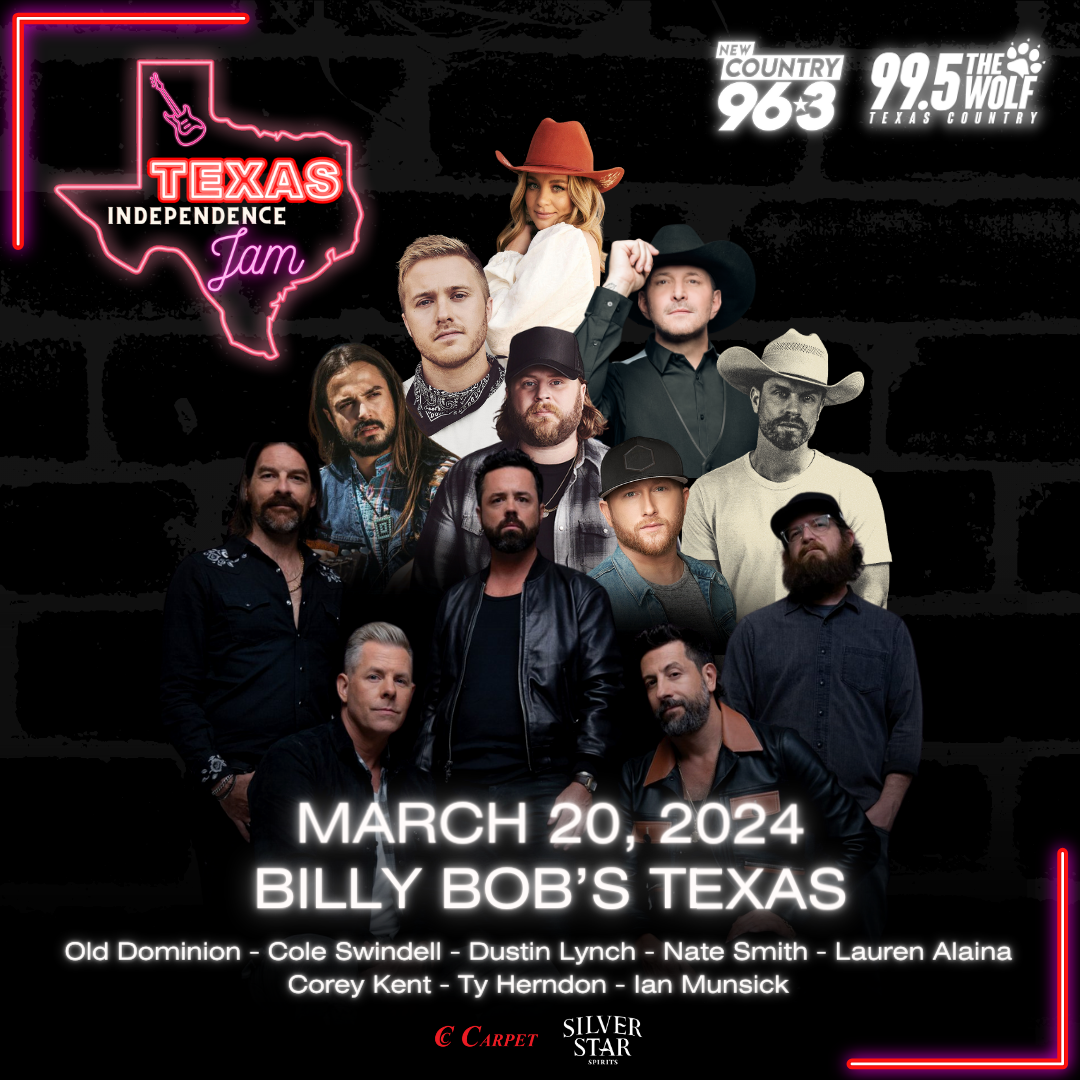 Local country stations New Country 96.3 and 99.5 The Wolf will present the 3rd Annual Texas Independence Jam on March 20 at Billy Bob’s Texas in Fort Worth. The lineup includes some of country radio’s hottest rising talent: Old Dominion, Cole Swindell, Dustin Lynch, Nate Smith, Lauren Alaina, Ty Herndon, Corey Kent and Ian Munsick are all scheduled to perform.