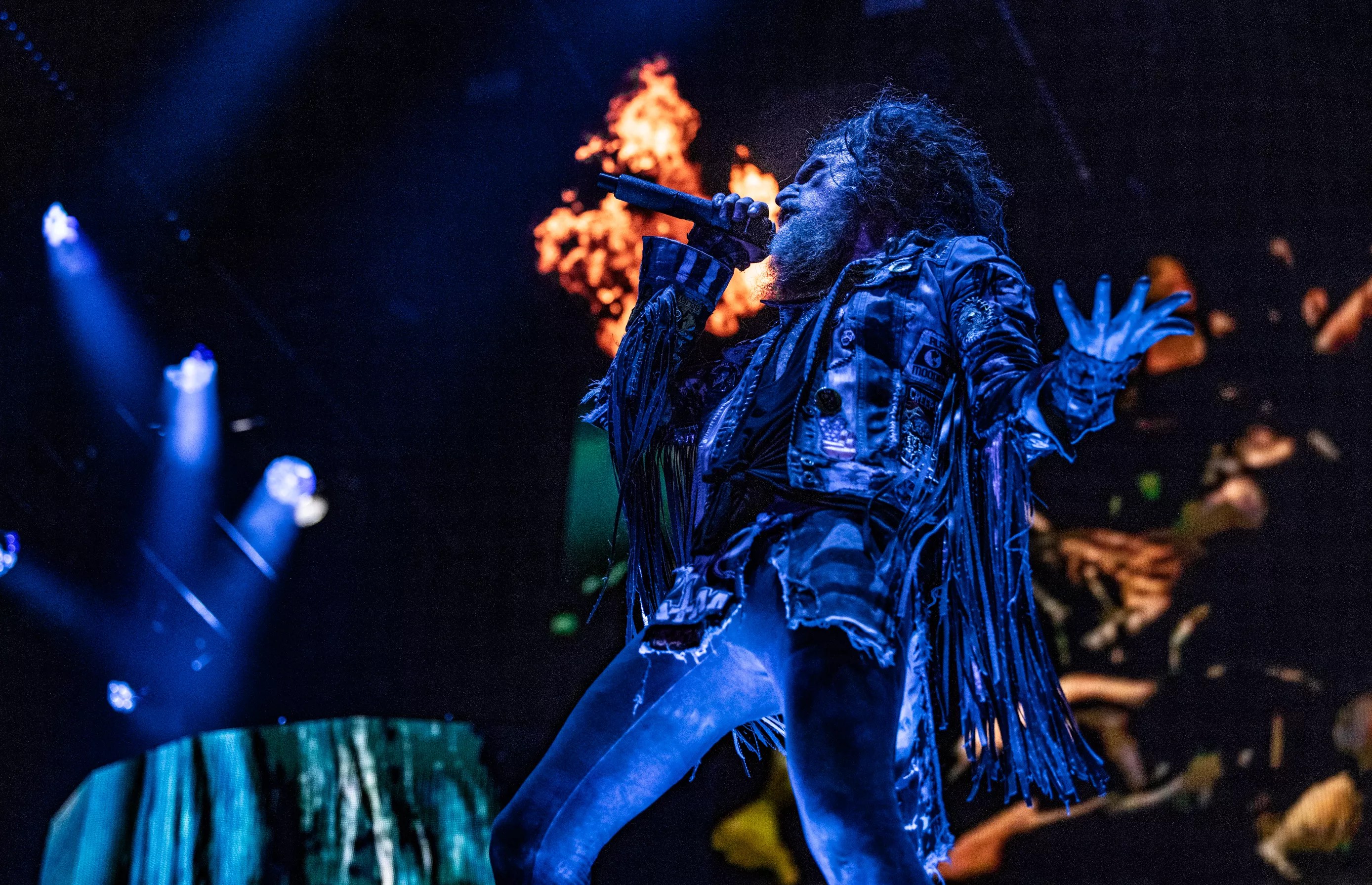Rob Zombie is no Alice Cooper, but he does put on a damn good show. Or should we say “damned” – Get it? Just when we thought it couldn’t get any hotter, the pyrotechnics started going off. Rob Zombie is the perfect act for this apocalyptic heat. Mike Brooks Rob Zombie was un-dead on Thursday. Mike Brooks