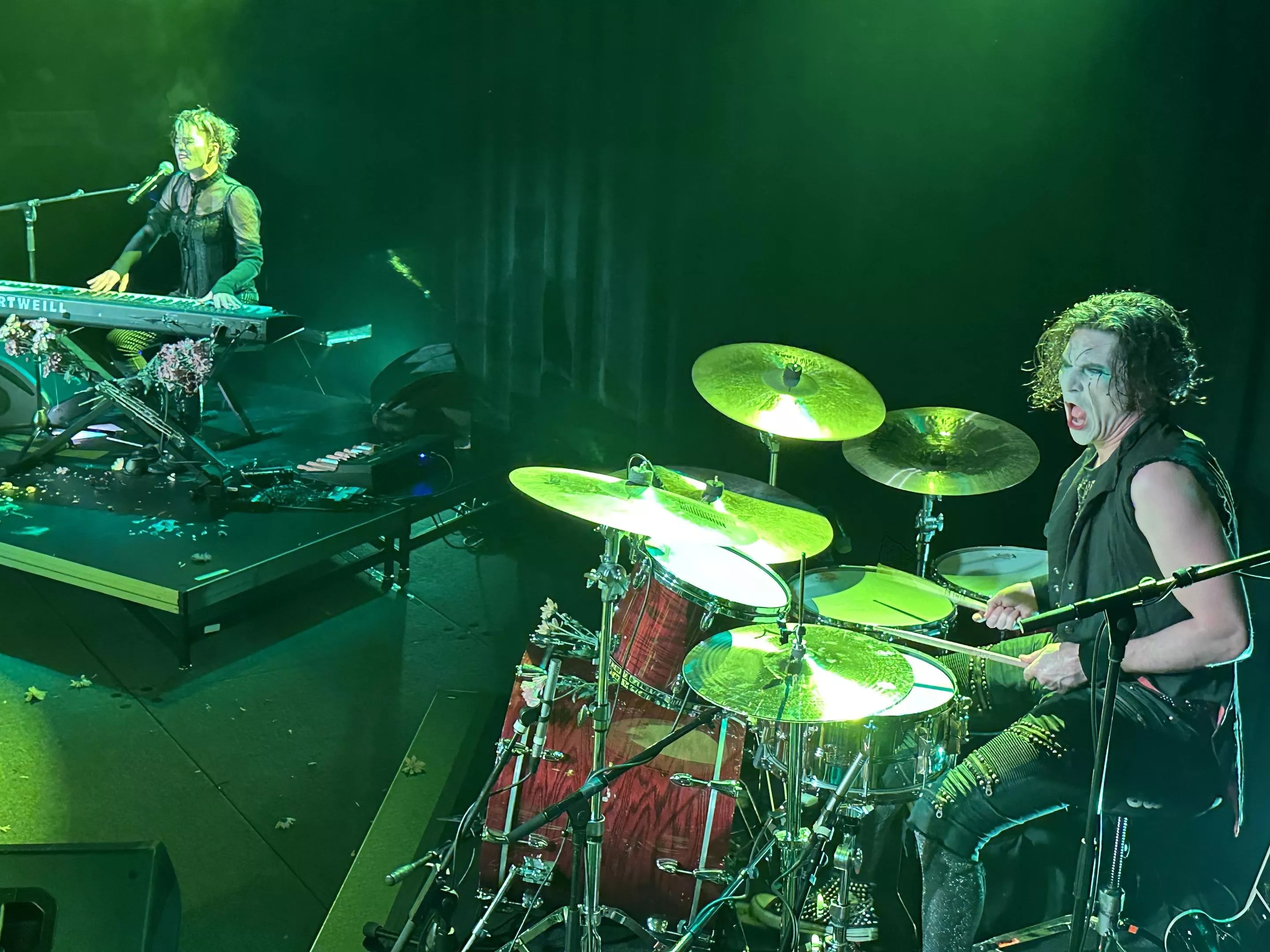 Palmer shed her coat leading into “Gravity,” revealing a sheer black blouse covering a black corset, writhing at Viglione’s drum break in which he actually broke a stick. Palmer smiled, vamping at the piano as her drummer recovered himself.