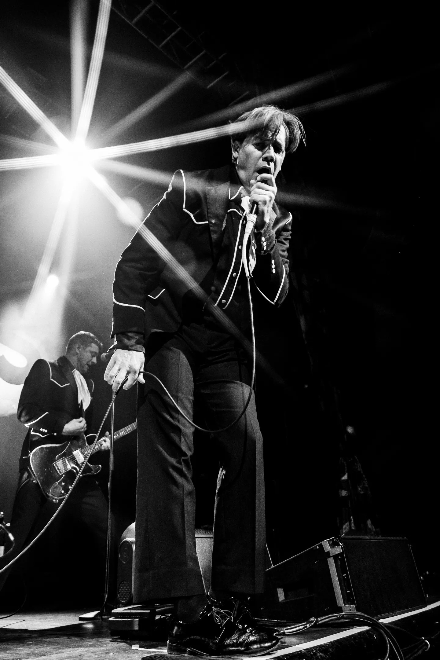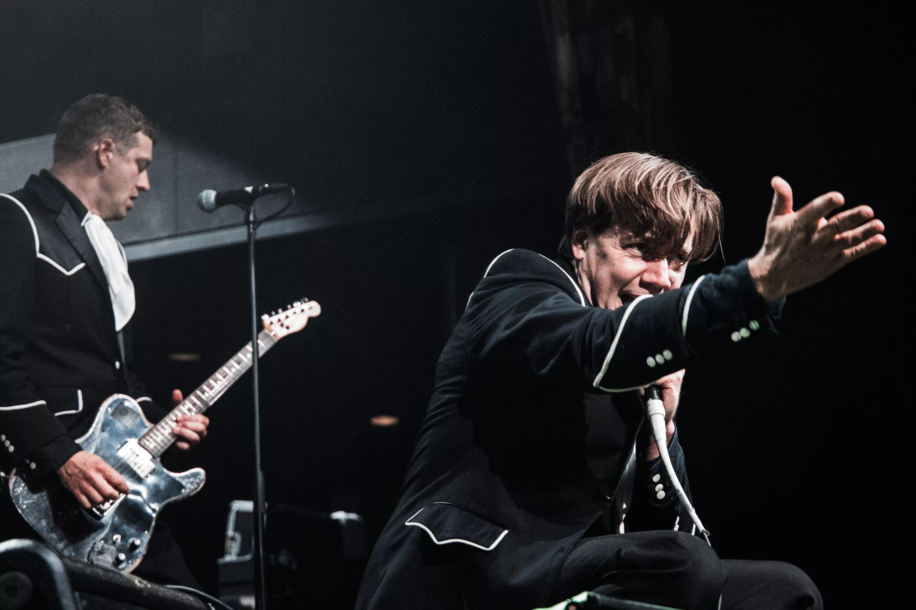 That sustained rush is one Almqvist doesn’t expect as much as relentlessly demand of the audience, exhorting their engagement again and again, Wednesday with athletic leg kicks, frantic beckoning and enthusiastic microphone gymnastics which would make Roger Daltrey blush – there were moments when it seemed as though Almqvist might launch the mic into the rafters.