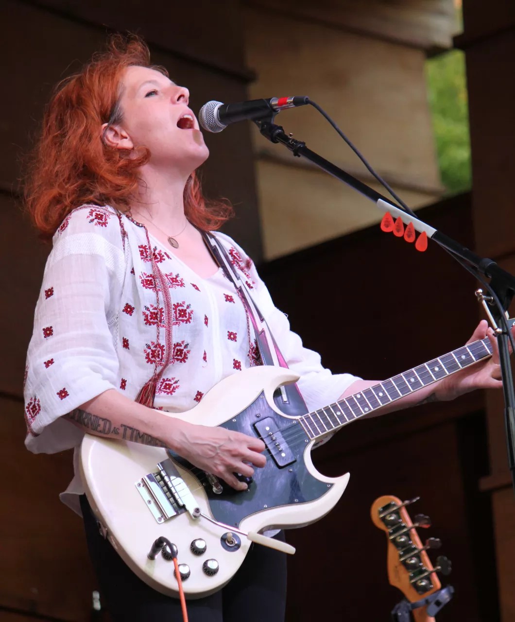 Neko Case, performing at the Rocky Mountain Folks Festival in 2012, is co-lead vocalist of The New Pornographers while also continuing a successful solo career.