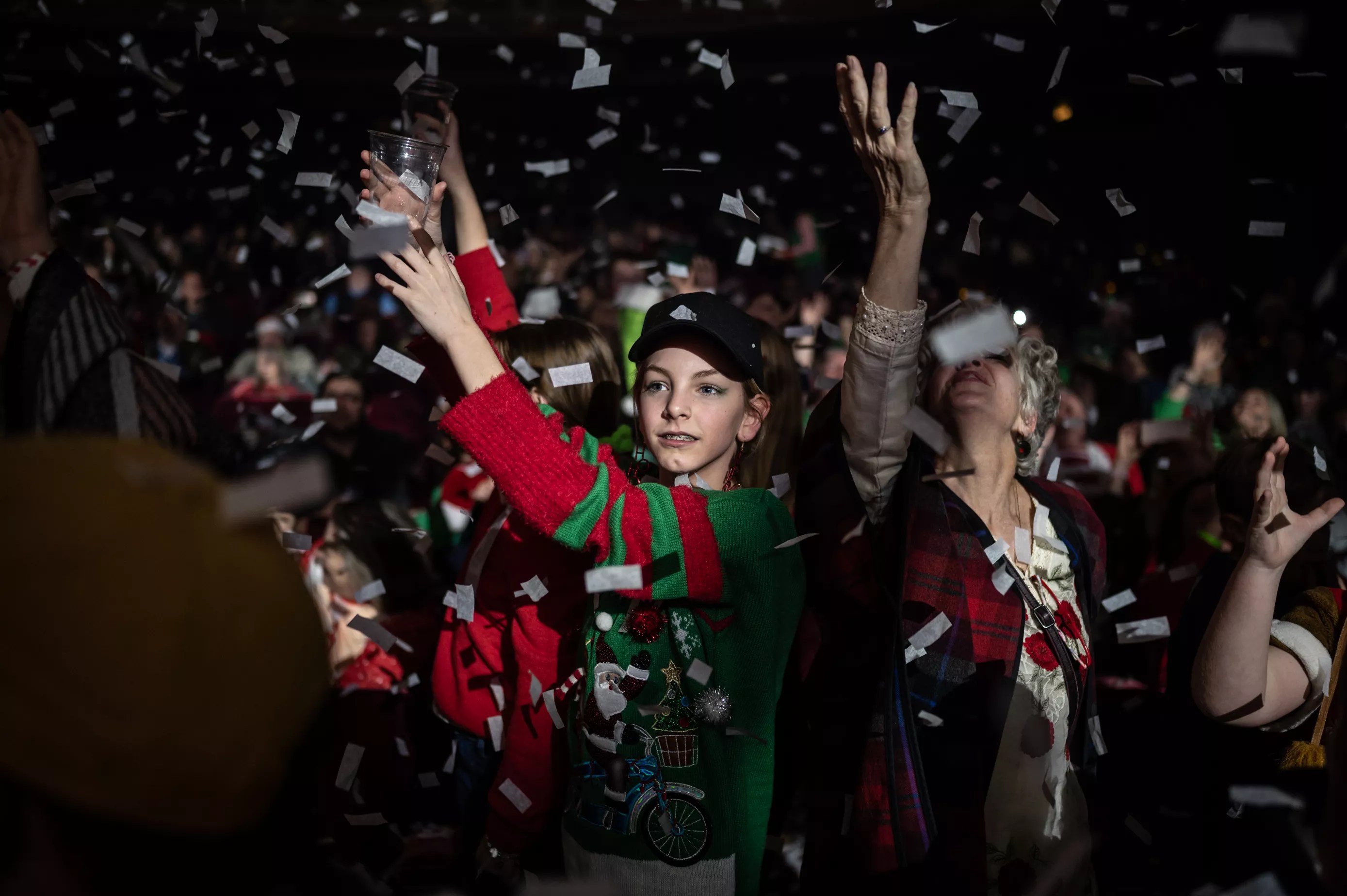 Chris Penn, Tim DeLaughter and the Polyphonic Spree hosted their annual pre-Christmas extravaganza and variety show on Saturday. Now in its 19th year, the event is filled with music, Christmas shenanigans, novelty acts and entertainers of all stripes. At around 10 p.m., the little ones are off to bed, the Spree change robes and a rock and roll show closes out the evening. The English word confetti is adopted from the Italian confectionery of the same name, which was a small sweet traditionally thrown during carnivals. Mike Brooks Confetti: Small bits or streamers of brightly colored paper made for throwing (as at weddings). Mike Brooks Christmas, Polyphonic Spree-style. Mike Brooks