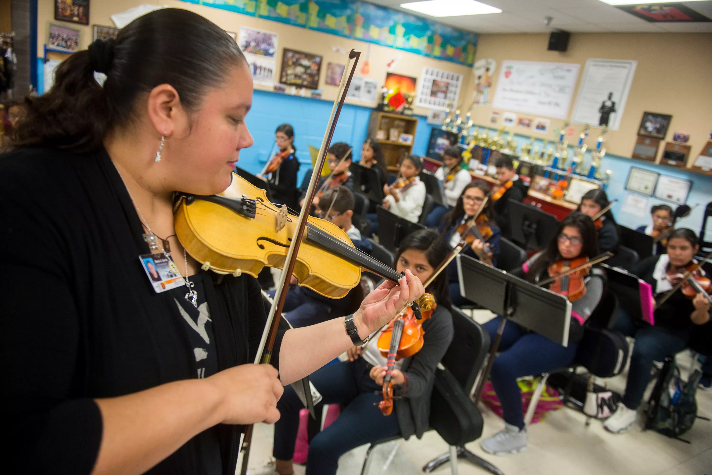 Vargas now instructs music students at Greiner. For nearly a decade, she has helped to shape seventh- and eighth-graders who continually win awards and garner recognition. She teaches orchestra and started a mariachi program. She also plays in a mariachi band on the weekends.