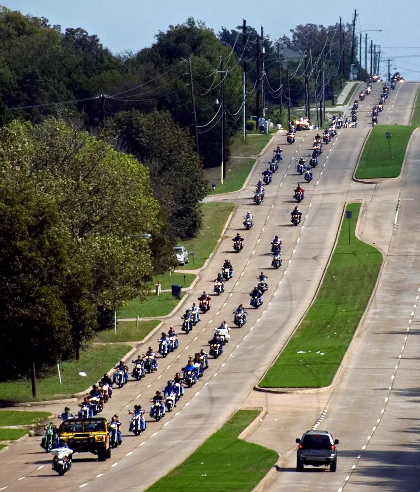 The motorcycle parade traces through Oak Cliff in 2007.