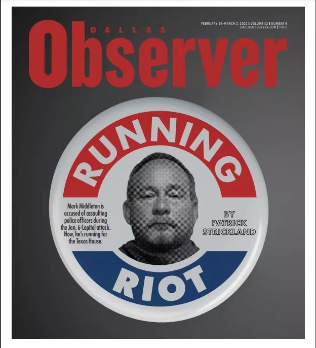 Depending on how you look at it, Mark Middleton might appear a man of obvious contradictions. He describes himself as an American patriot and someone who firmly believes Texas should at least consider breaking away from the union. He backs the blue and yet allegedly brawled with cops while hundreds raided the Capitol. He harbors little love for the Texas GOP but hopes to join the Legislature under the party’s banner.