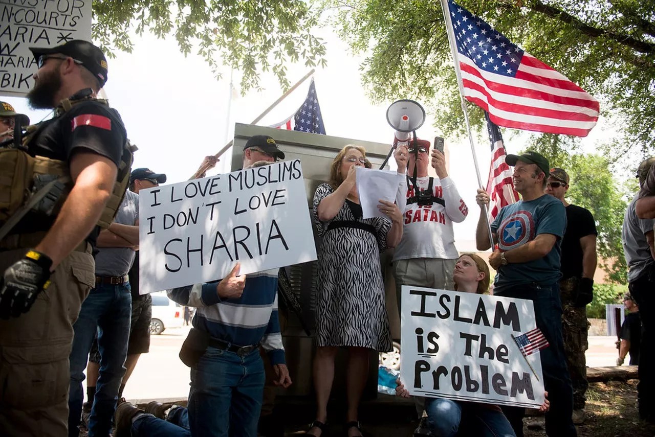 Protecting the anti-Sharia protests, and as requested by ACT organizers, armed members of the Oath Keepers stood watch on the streets and alongside Richardson police officers. In addition to the Oath Keepers, members of the III% Security Force Militia – The Three Percenters – stood guard. Both groups are considered radical anti-government groups by SPLC.