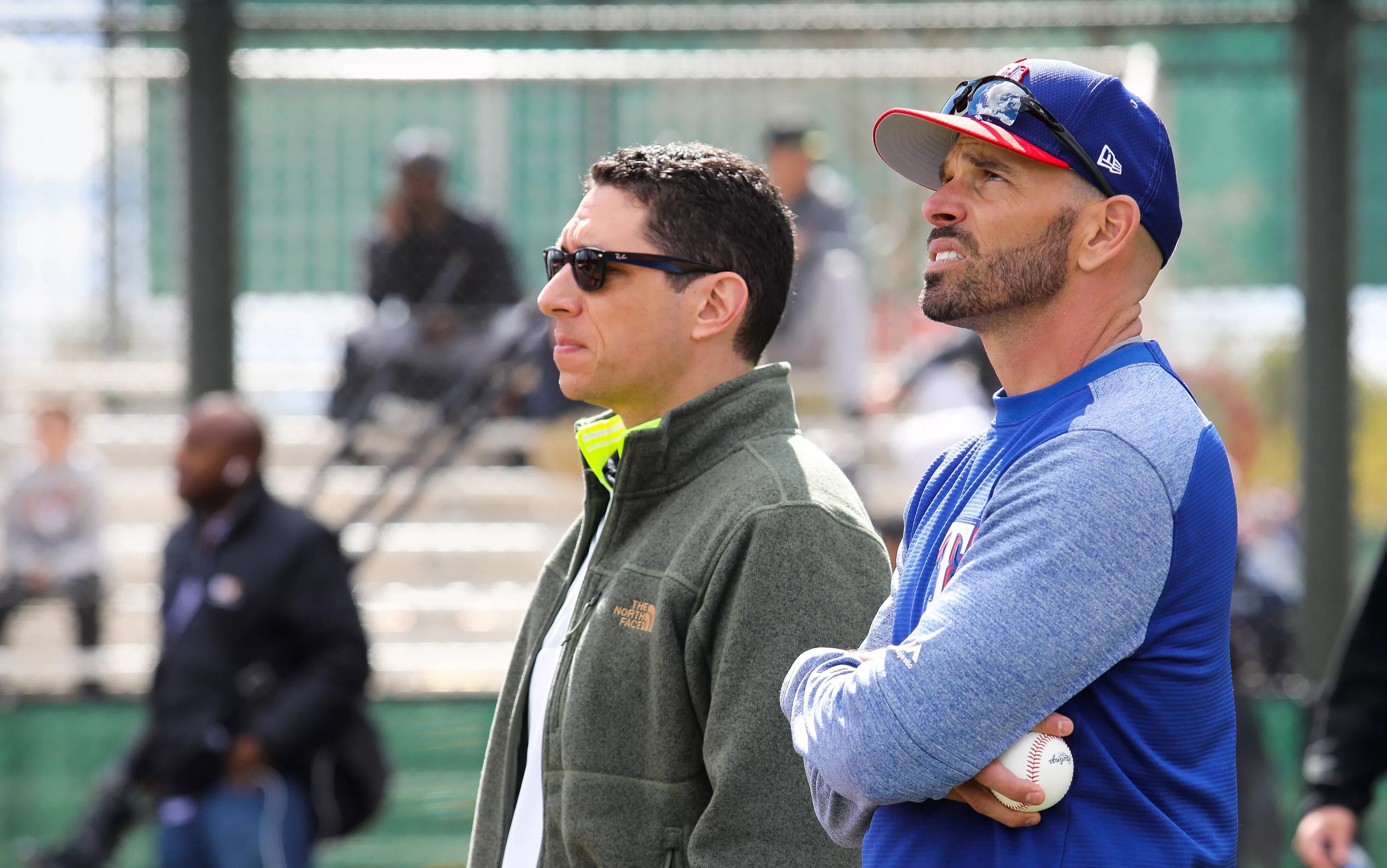 General manager Jon Daniels (left) and Rangers manager Chris Woodward