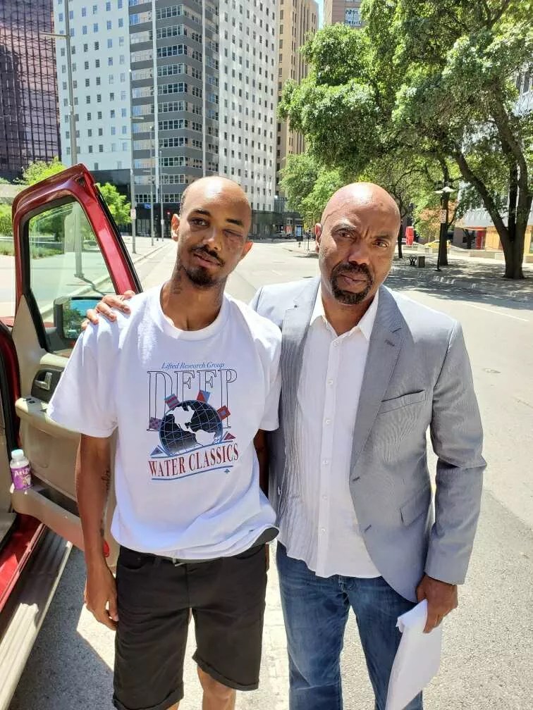 Saenz and his attorney Daryl Washington after Saenz was discharged from the hospital: Washington says they want more than a civil settlement from the city. They want the officer who shot him and those who didn’t help Saenz as he bled on the sidewalk to face criminal charges.