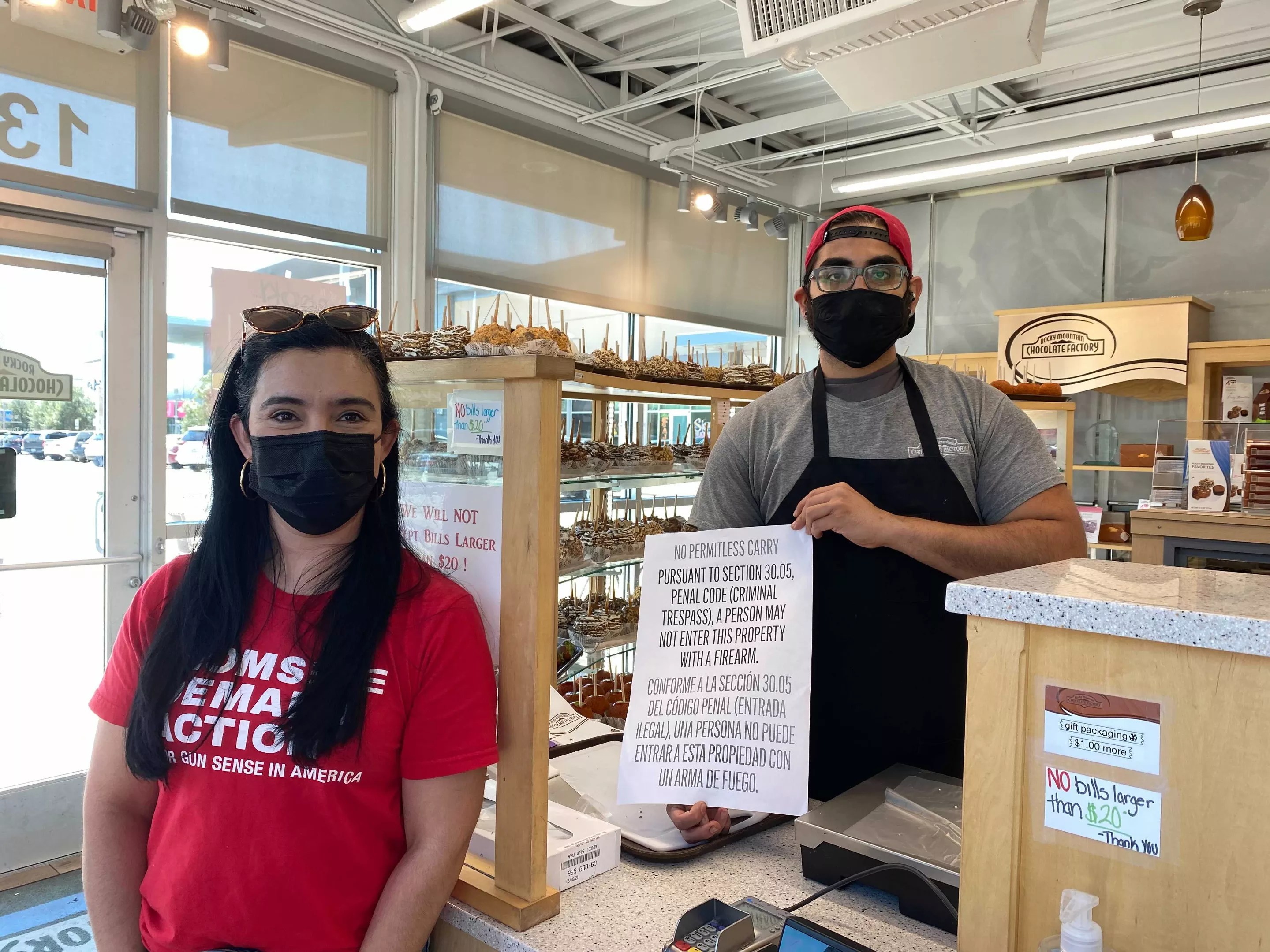 Moms Demand Action volunteers are equipping business owners with signs prohibiting firearms.
