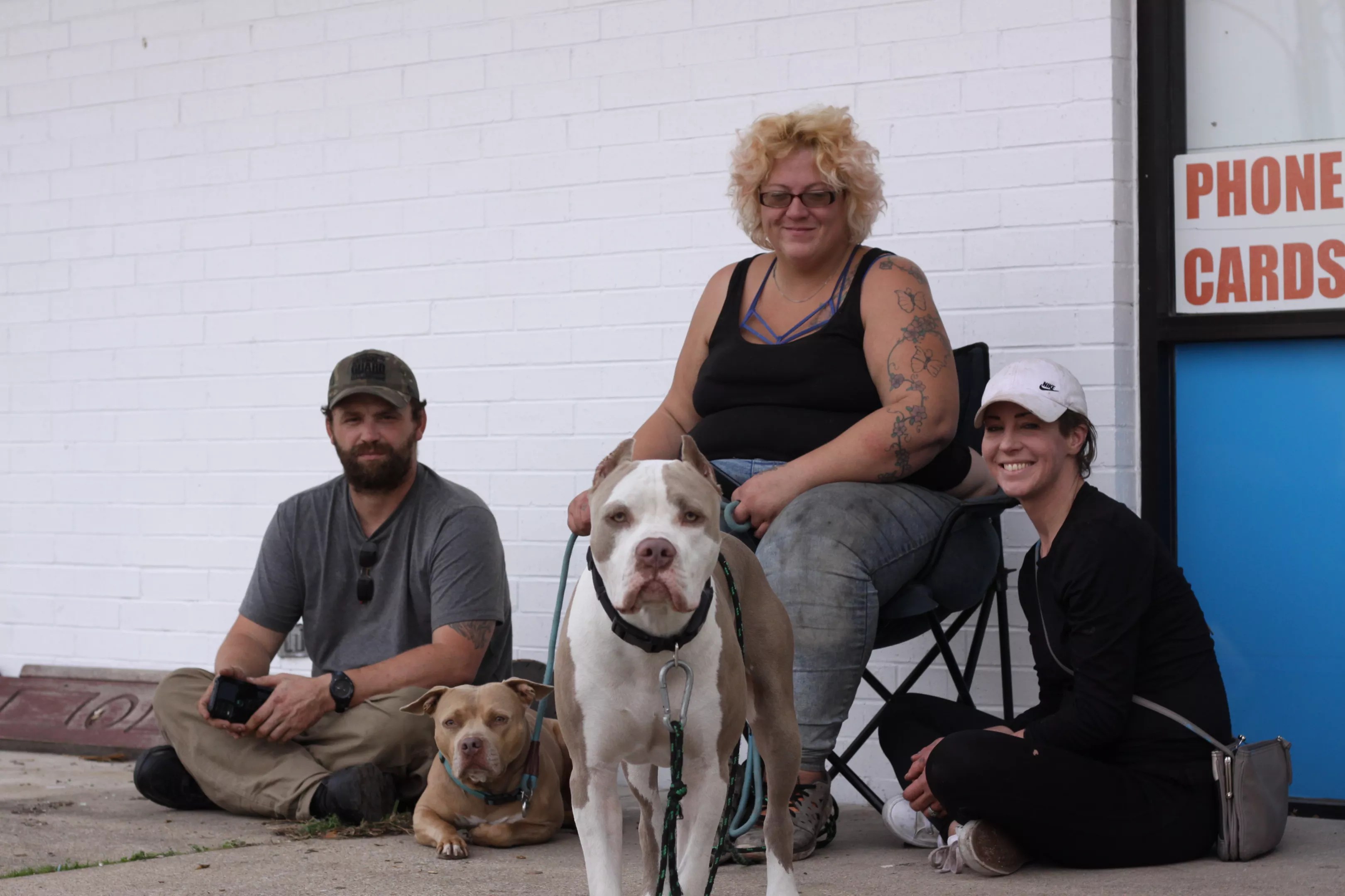 On a hot day in early November, Justin Thomas, Caitlin Sowell and Danielle Hollowell sat outside the Moni Food Mart at the corner of Marsh Lane and Rosemeade Parkway in northern Dallas. Two young pit bulls named Bruce and Buddy Holly lay beside them. The three are homeless and living in tents at a nearby encampment, but they’re trying to change that.