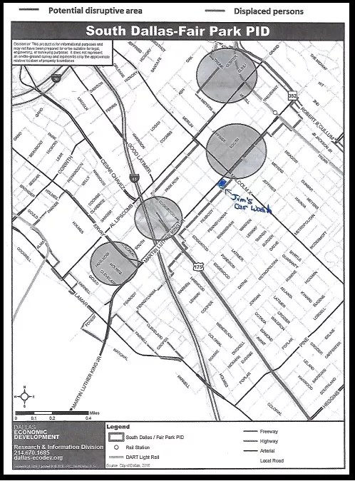 People from the city attorney’s office handed out the maps at a meeting of the South Dallas-Fair Park Public Improvement District. One of the people in attendance who got a map from the nice people in the city attorney’s office was Dale Davenport, co-owner of Jim’s Car Wash. He was very glad to get it.