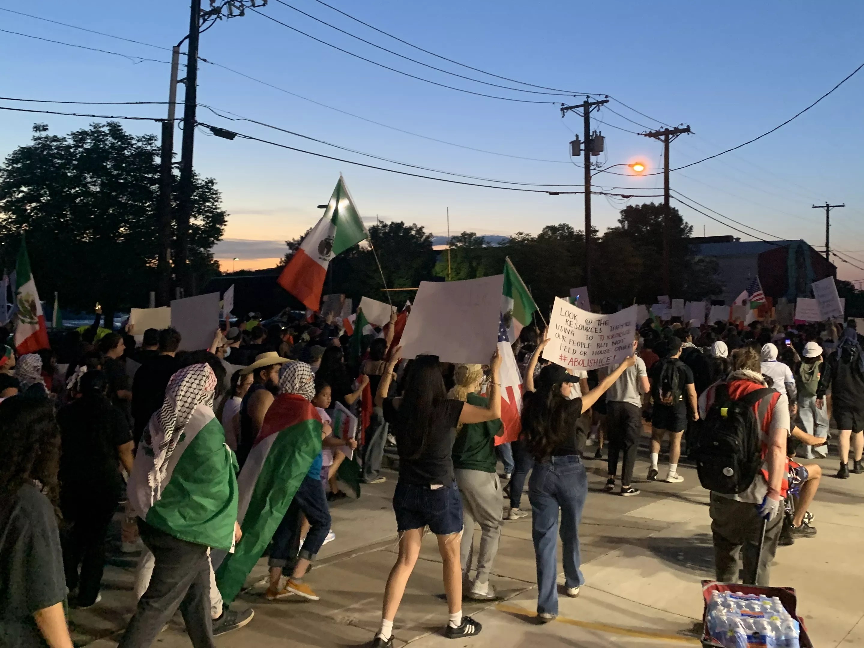 The large assembly moved down Singleton before turning into the La Bajada neighborhood behind Trinity Groves. Organizers told us that while the rally had been a planned gathering, the march was not planned and occurred organically as protesters felt called to mobilize.