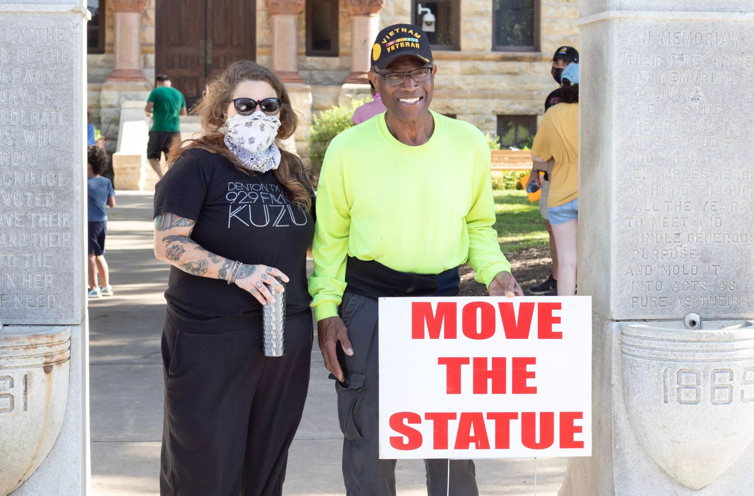 It’s a moment 21 years in the making for Willie Hudspeth. Since the late ’90s, the activist has been protesting Denton’s Confederate monument, which stands in front of the town’s courthouse.