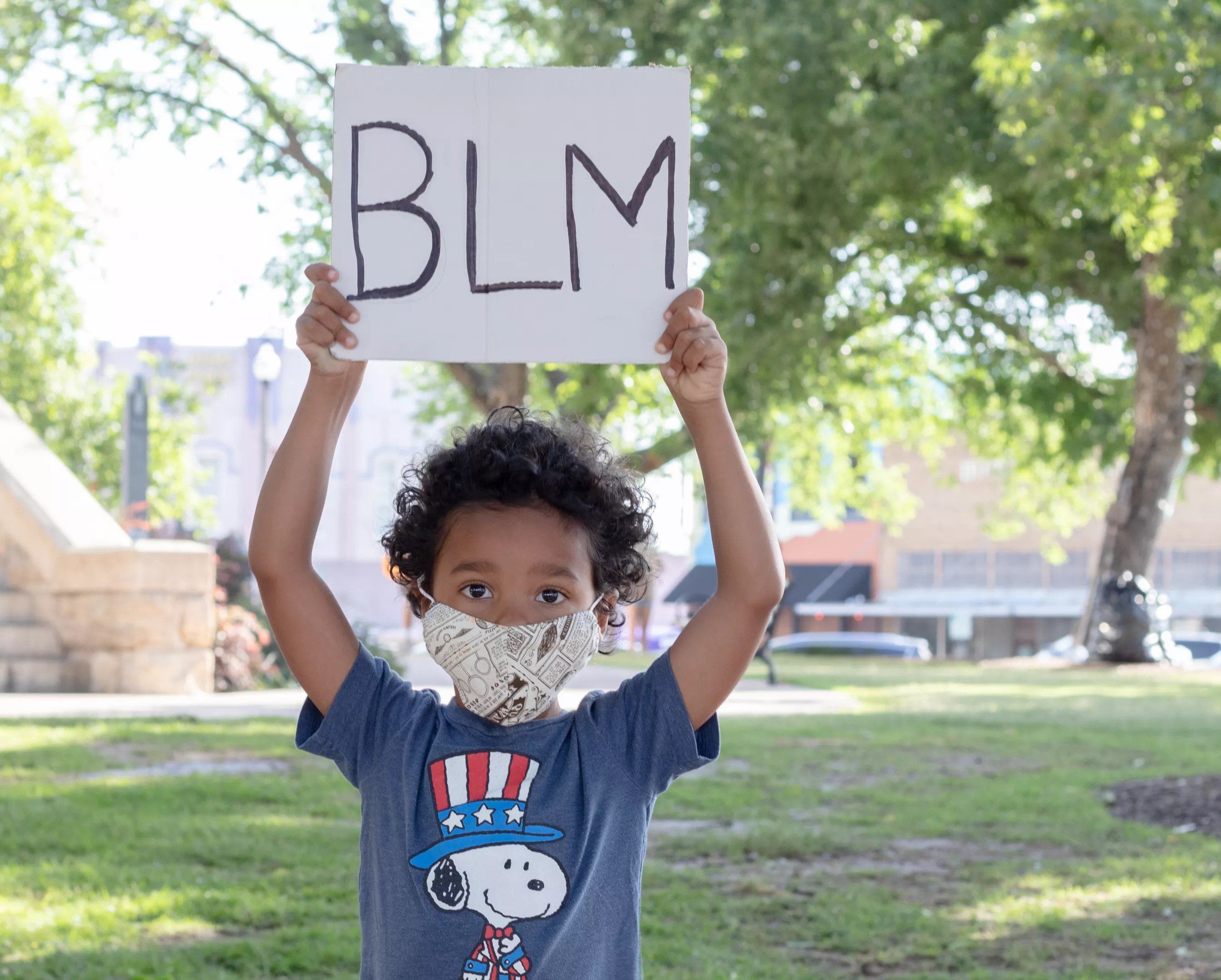 Activist Leo Isma, 4, holds a Black Lives Matter sign ahead of Tuesday’s vote to remove Denton’s Confederate monument. It was his first protest.