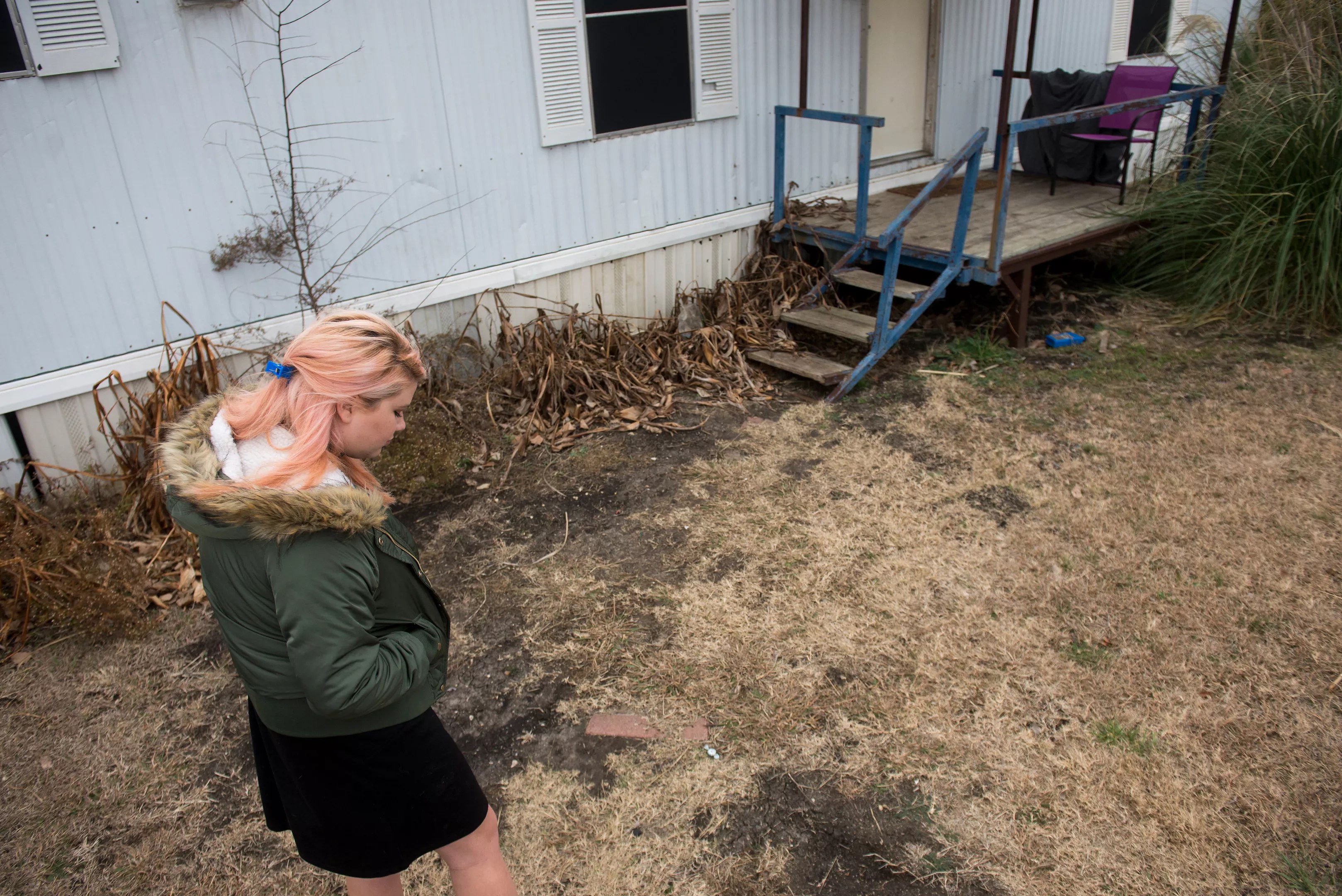 Ashleigh Allison at the trailer where her brother killed himself.