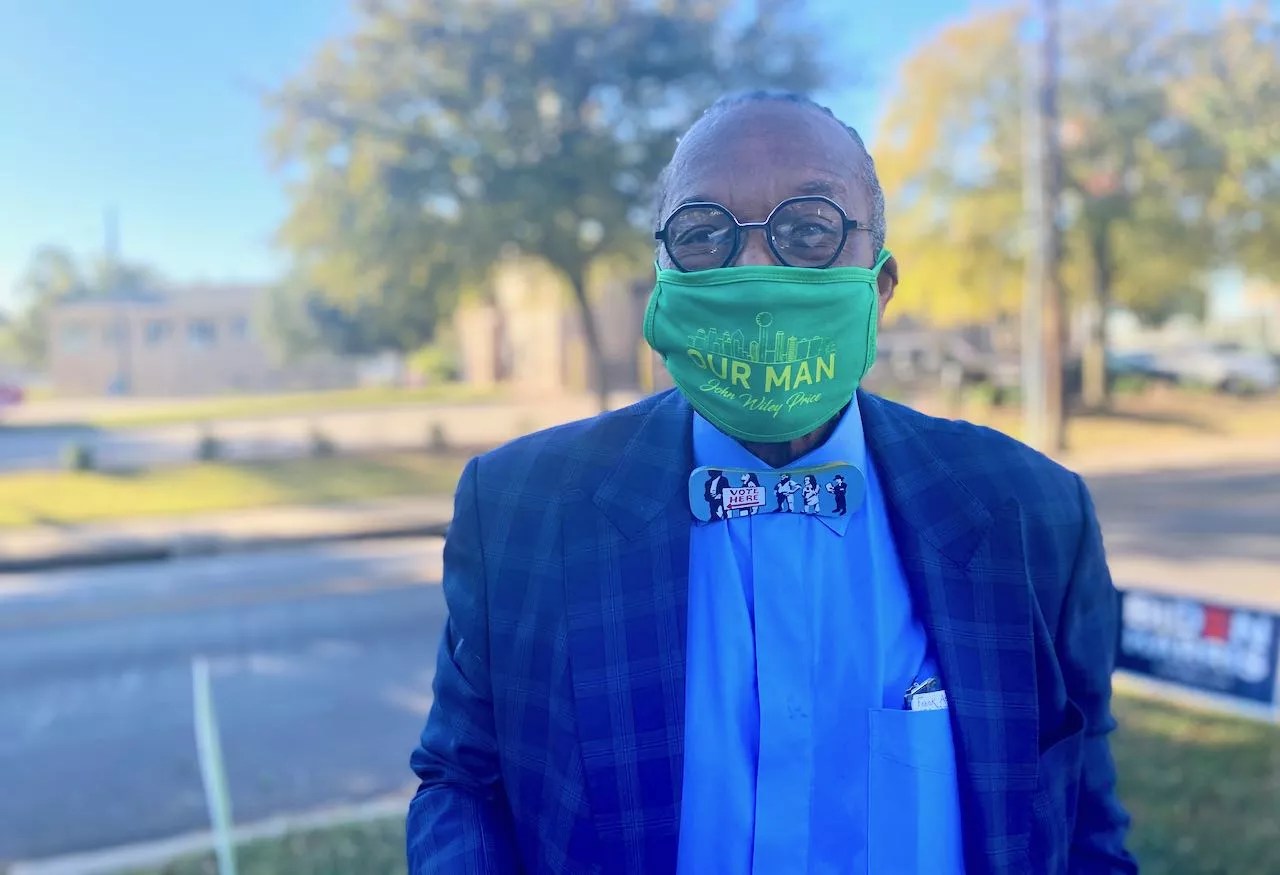 County Commissioner John Wiley Price checked on a few polling places in District 3 before getting in line.