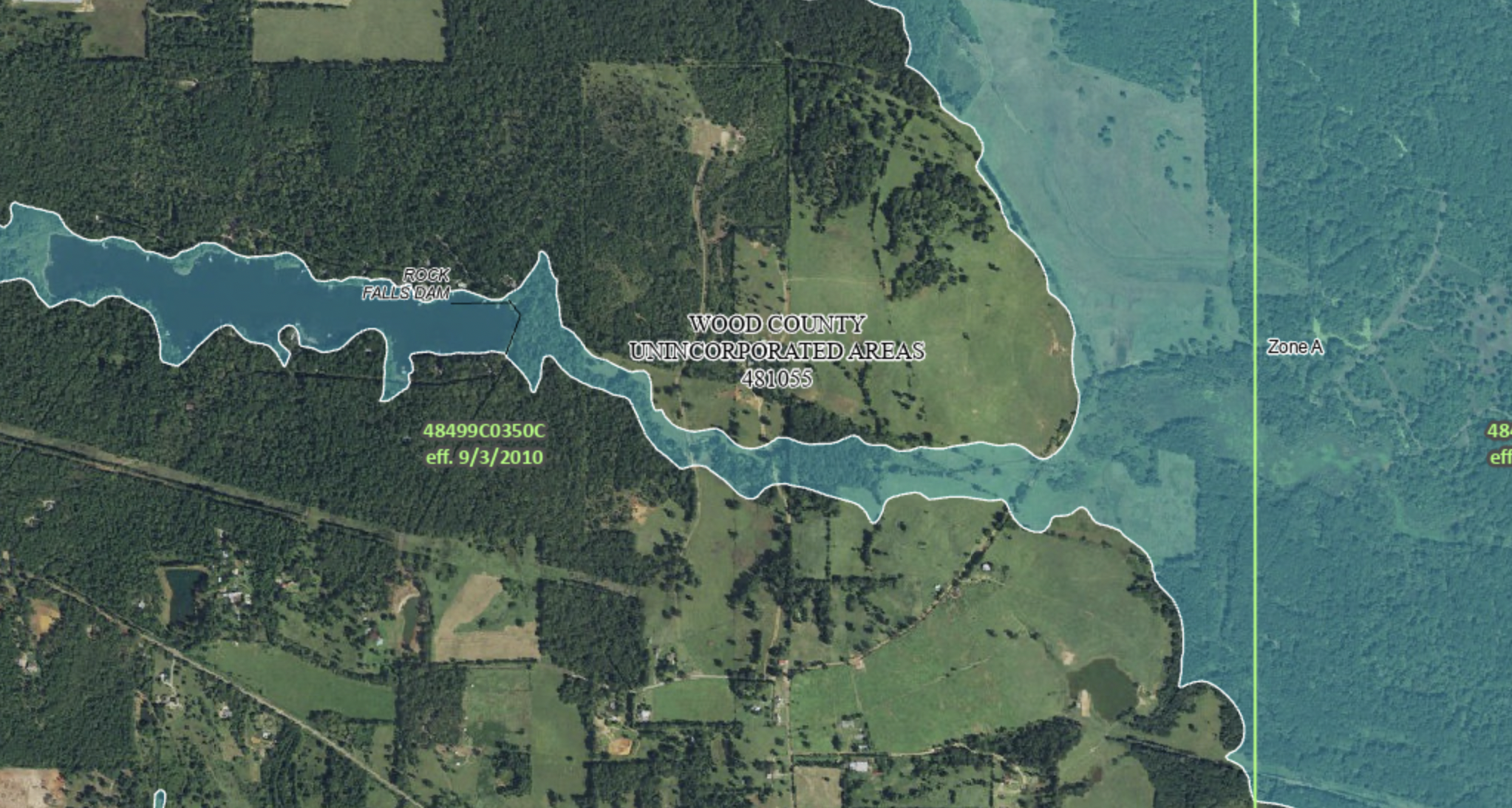 A few months ago, Mayer was in the “right place at the right time” when he overheard a conversation about dredging that took place in 2020 at Rock Falls Lake in Wood County, about two hours east of Dallas. The dredging, he discovered, was substantial, and he worries the millions of gallons of water added to the lake could be dangerous because the lake sits within a FEMA Flood Zone A, one of the highest-risk designations.