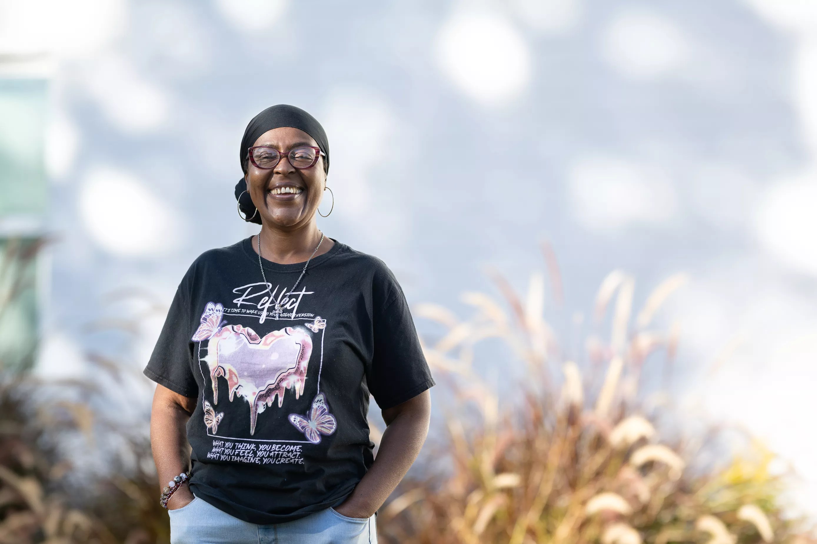 Paula Baines, 54, is determined not to be part of that 18%. She’s in a rapid rehousing program run by the local organization Under 1 Roof, a group that is also part of the R.E.A.L. Time Rehousing Initiative. Baines is in her second month in the program after moving into a place in East Dallas called The Flats on Bryan in October. Before The Flats, Baines had been staying at Austin Street Center since January. She’s excited about rapid rehousing.