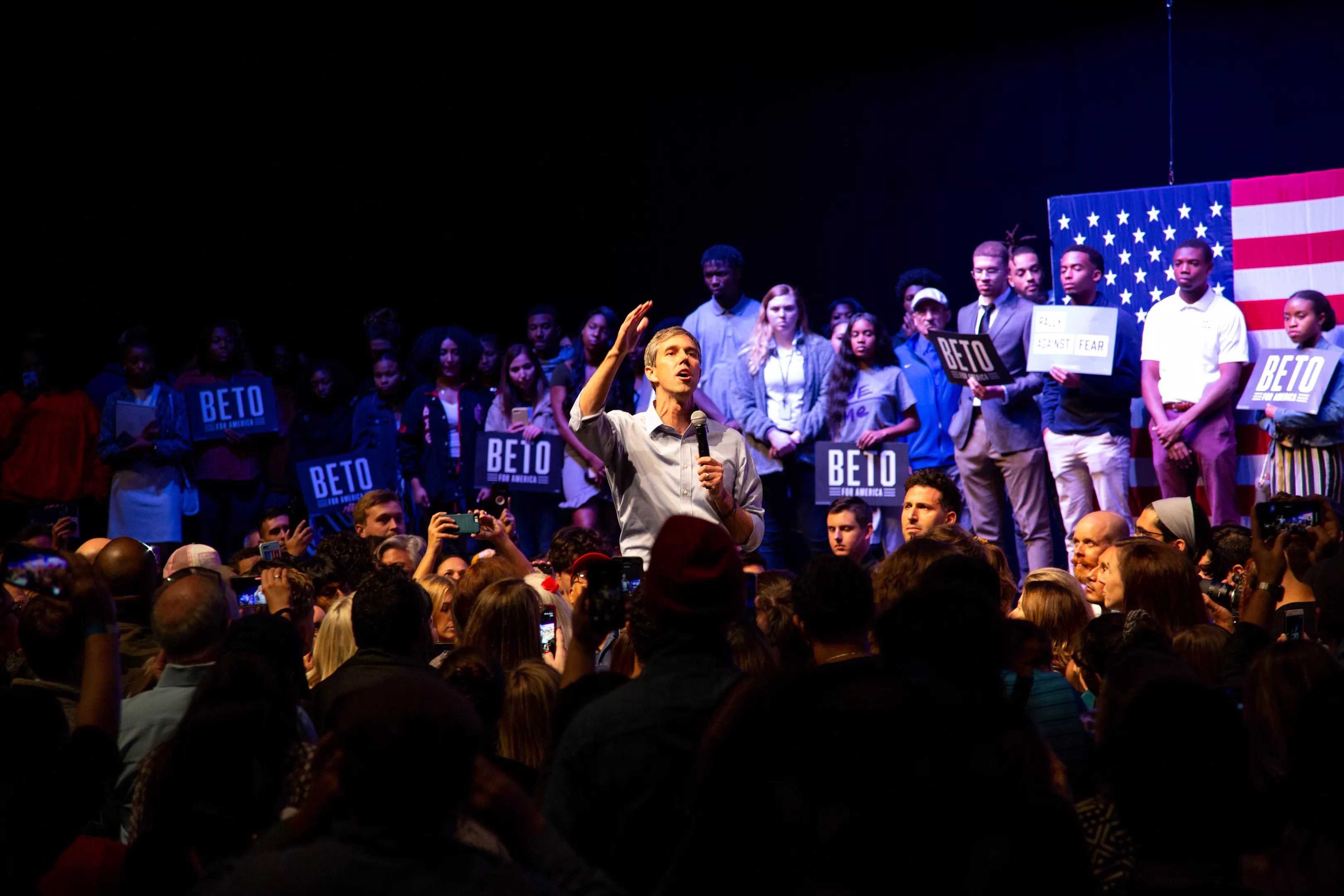 Standing on a platform surrounded by a crowd of screaming fans and waving signs, Democratic presidential candidate Beto O’Rourke told a packed theater at his Rally Against Fear about his plans and dreams for the country.